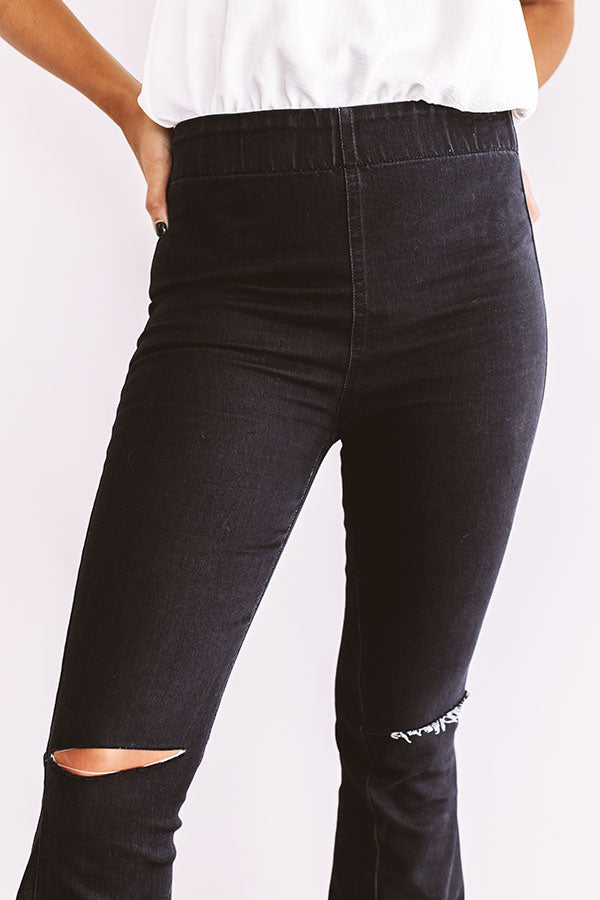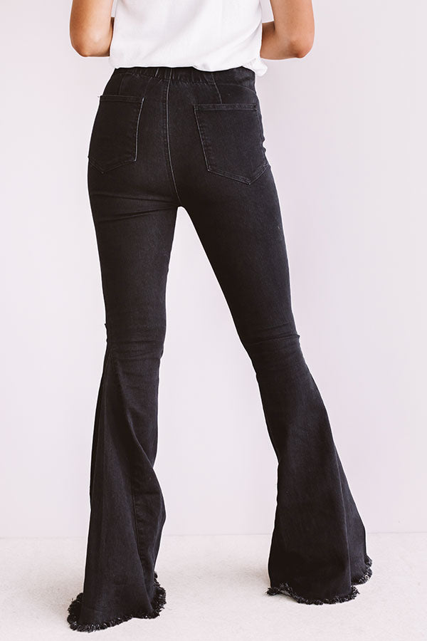 Stay groovy this summer with "The Blakely" black pants featuring a high waist, a light wash color, oversized flared bottoms, a stretchy fit, an elastic waistband, frayed hems, and distressed knees! These retro bottoms will take your from season to season when you wear with your favorite open toed heel and tank top in the summer and with booties and a sweater in the fall!