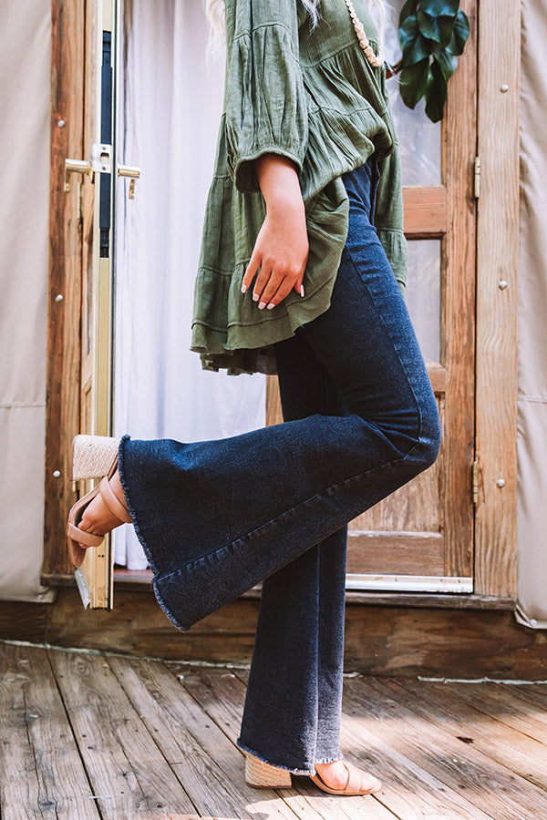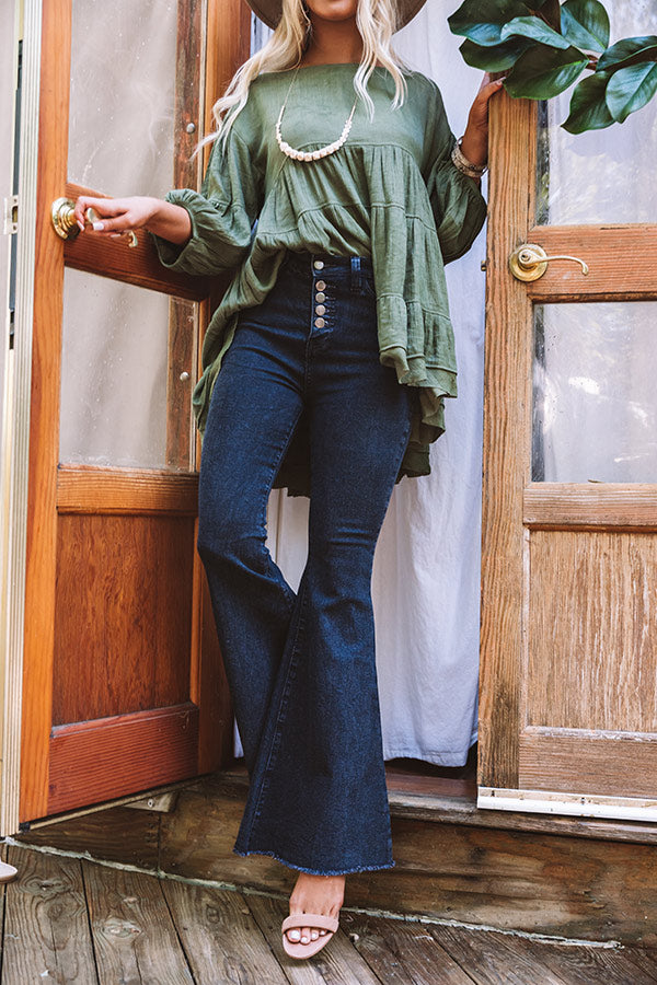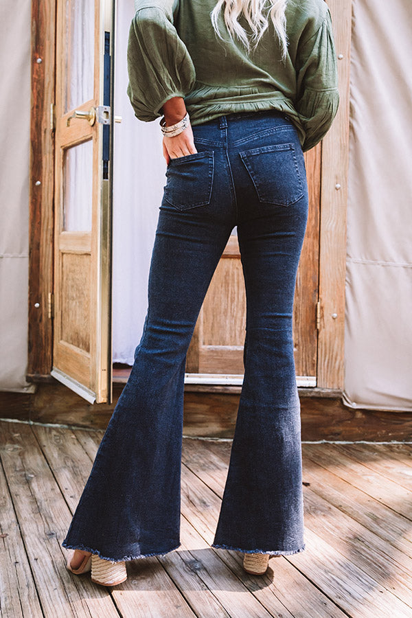 You are sure to love the black "Blaylock" flares featuring lightweight denim material, a high waist silhouette with belt loops, a five button closure, four pocket cuts, and a stretchy figure flattering fit that falls into trendy raw cut floor-length hemlines! These groovy bottoms will take you from season to season when you wear with your favorite open toed heel and tank top in the summer and with booties and a sweater in the fall!