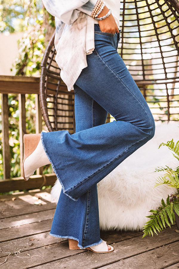 You are sure to love "The Blaylock" flares featuring lightweight dark wash denim material, a high waist silhouette with belt loops, a five button closure, four pocket cuts, and a stretchy figure flattering fit that falls into trendy raw cut floor-length hemlines! These groovy bottoms will take you from season to season when you wear with your favorite open toed heel and tank top in the summer and with booties and a sweater in the fall!