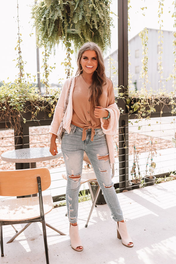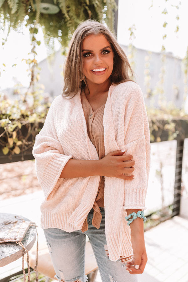 You will be a fall bombshell in this cream cardigan featuring a soft tight knit chenille texture, a slouched open front with a loose bodice, and ribbed detailing on the flared 3/4 length sleeve cuffs and the straight ribbed hemline! You can style this versatile fall piece with just about anything from a basic tank to a swimsuit, jeans to shorts, wedges to sandals, clutches to totes, and hats to earrings! Here we have styled it over a basic shirt with some distressed skinnies and a neutral bootie! Measurements