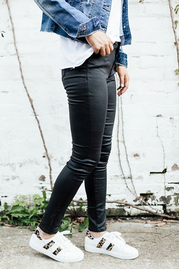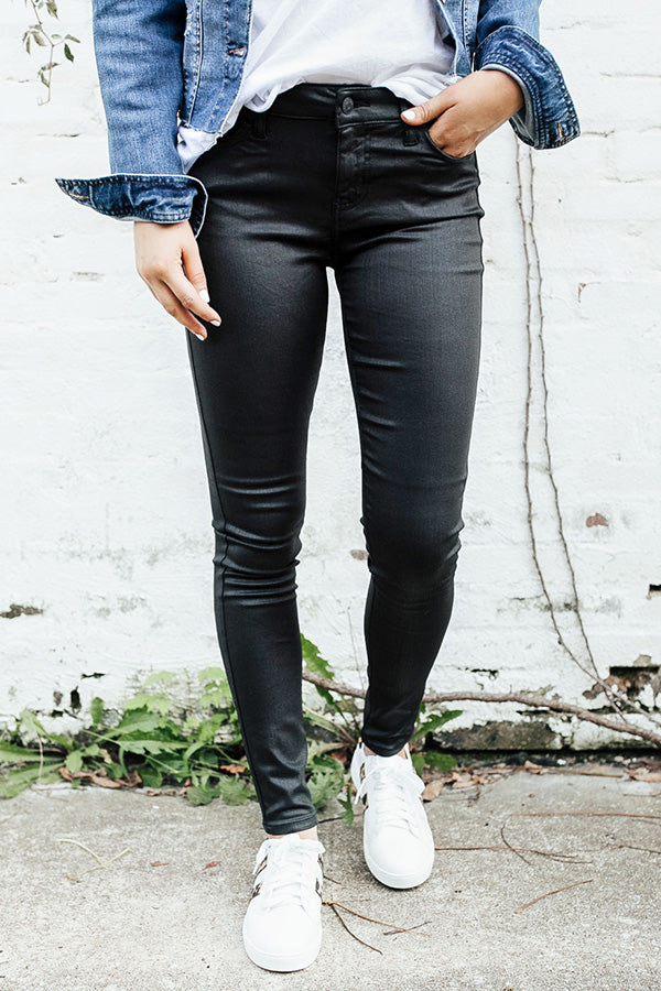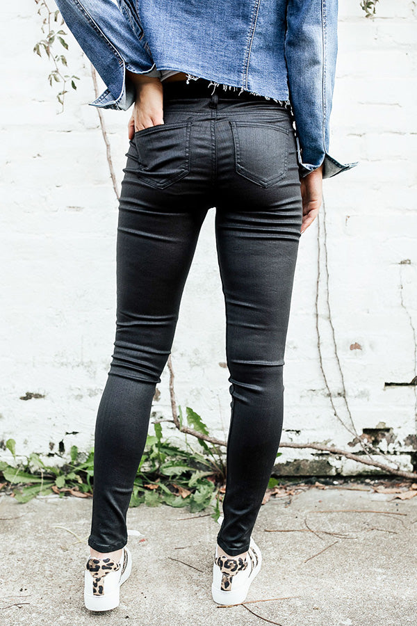 Add a little edge to any look with "The Bowie Mid Rise Skinny!" These black coated skinny jeans have a mid-rise fit, a sleek stretchy skinny silhouette & an ankle length hem.