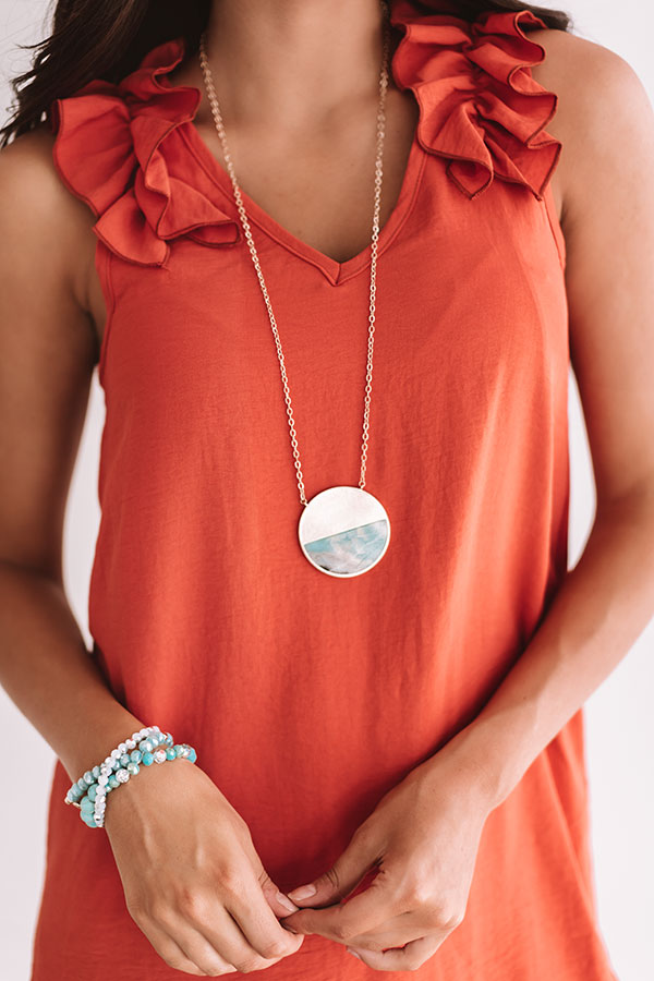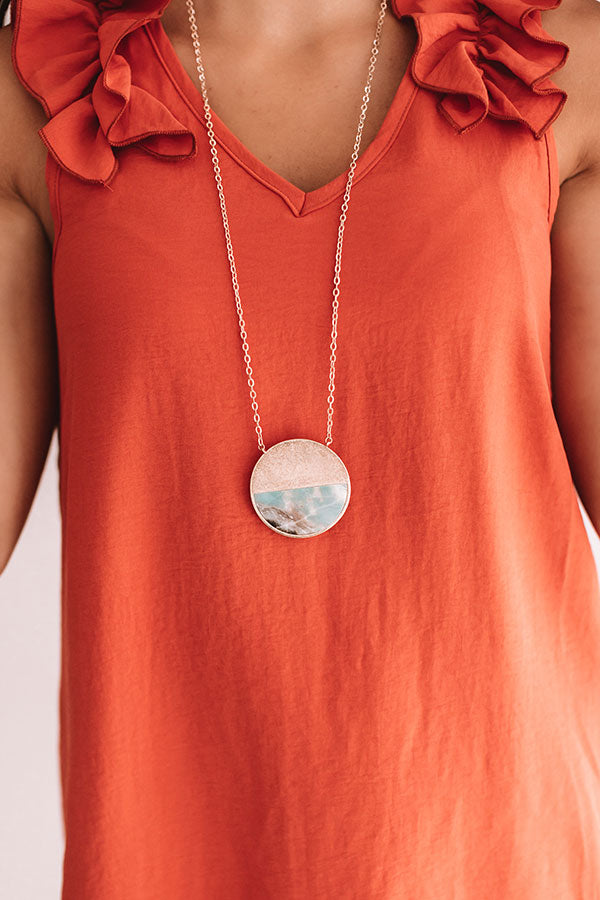 Live on "the bright side" in this adorable necklace with its long chain and circle pendant that is half gold and half turquoise stone!