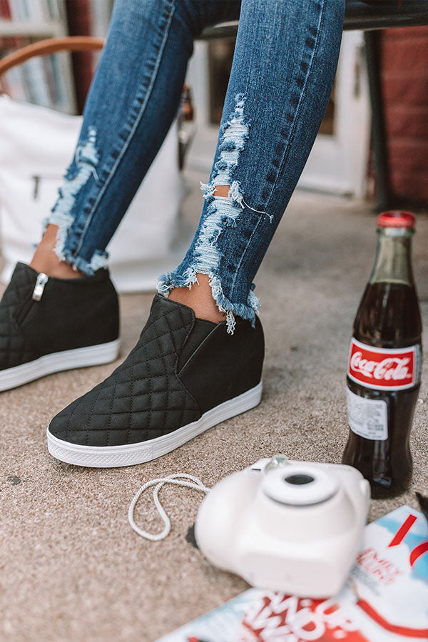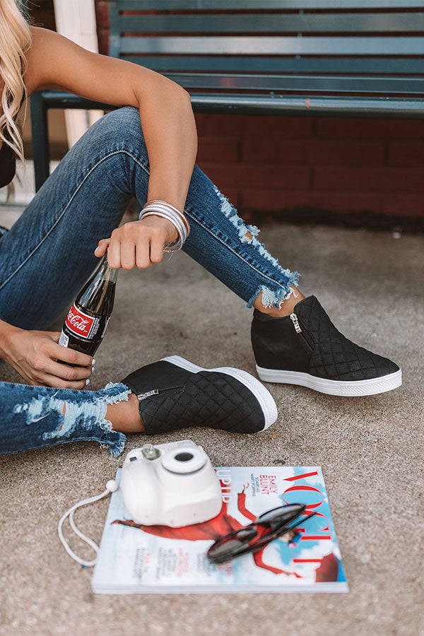 Why be moody when you can wear some booties!? These black beauties are adorned with a quilted textured top, a lifted sole, and elastic panels making these the perfect 24/7 shoes that are comfortable while still being trendy!