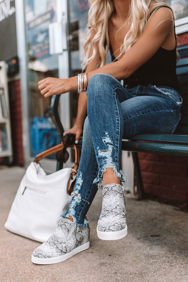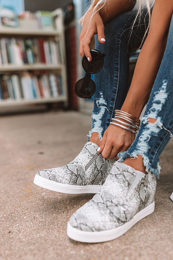 Why be moody when you can wear some booties!? These snake print beauties are adorned with a lifted sole and elastic panels making these the perfect 24/7 shoes that are comfortable while still being trendy!