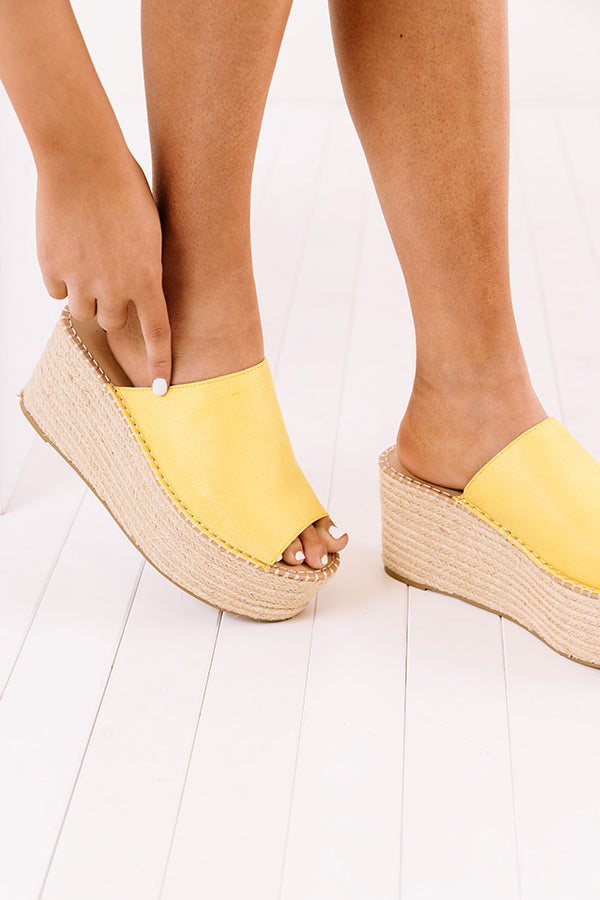 Slip into summer in style with our adorable 'Cameron Espadrille' featuring a wide yellow over the foot strap, a 3.5-inch lifted sole with ribbed texturing, rounded open toes, and open heels with a slip on silhouette! This espadrille runs more true to size.
