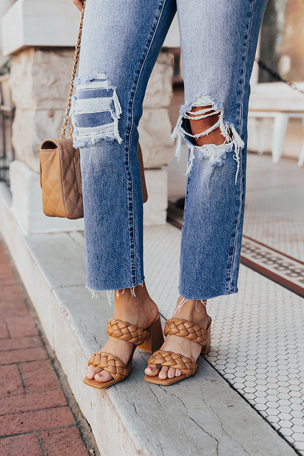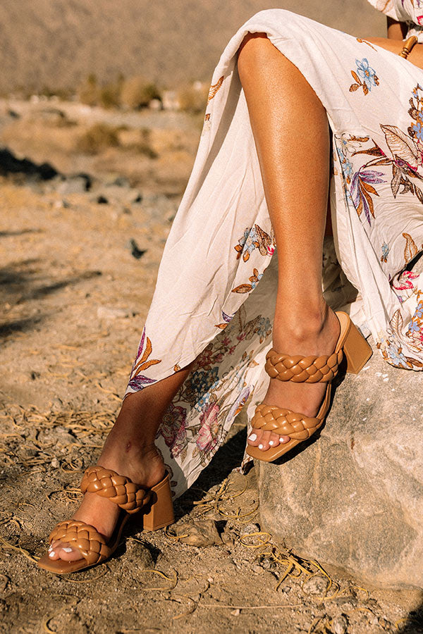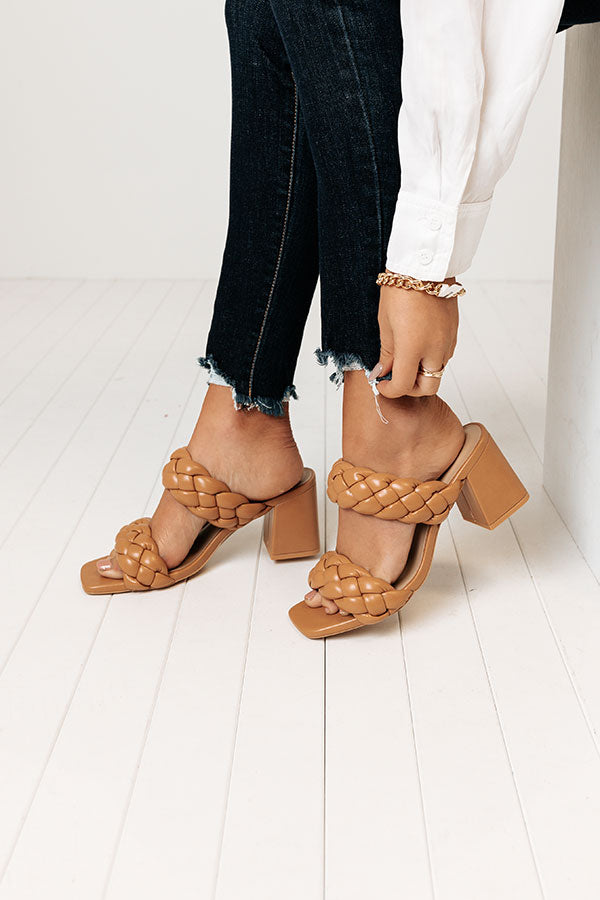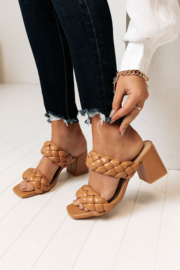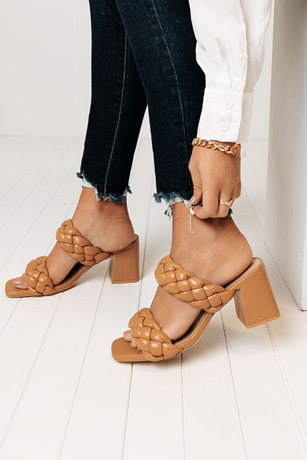 The trendiest shoe of the season just dropped! Our gorgeous camel hued 'Carmella' heel features two braided faux leather over-the-foot straps, a 3-inch block heel, a square open toe, and a lightweight slip-on silhouette! This heel runs more true to size.