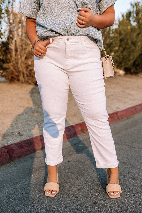 Stay classic in our white upscale plus size 'Carver' jeans featuring lightweight denim material, belt loops, a hidden zip fly with a button closure, a classic four pocket cut, and a relaxed silhouette that falls straight into ankle-length hemlines that can be cuffed!