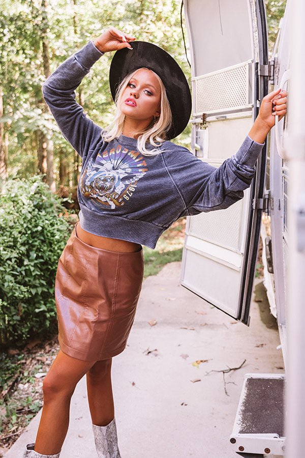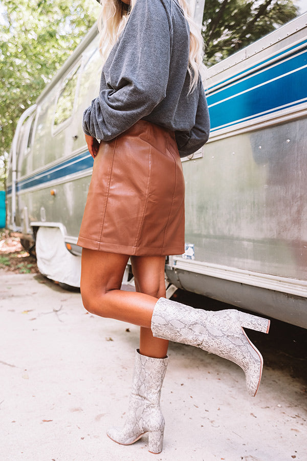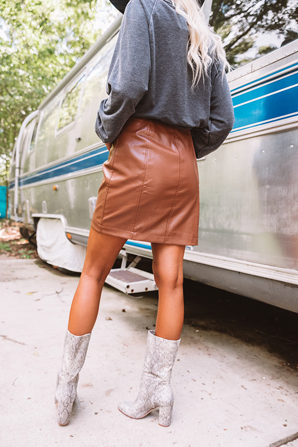 Stay fierce all year round in our edgy brown "Charlee" skirt features sleek faux leather material, a high waistline, vertical seam accents, and a figure flattering silhouette that falls into a straight mid-thigh length hemline! We have styled this cutie with a grunge sweatshirt, a wool hat, and some snake print booties, but you can also wear it with a basic white tank under a jean jacket, "The Melina Faux Leather Heel in White," and our "Sense Of Style Woven Bag in Brown!" Measurements