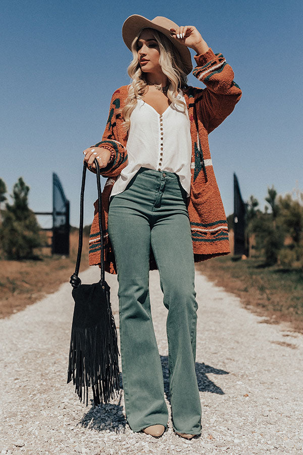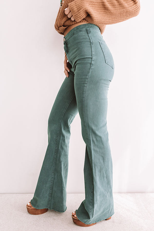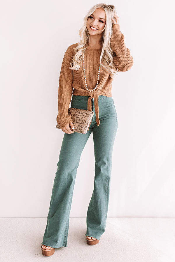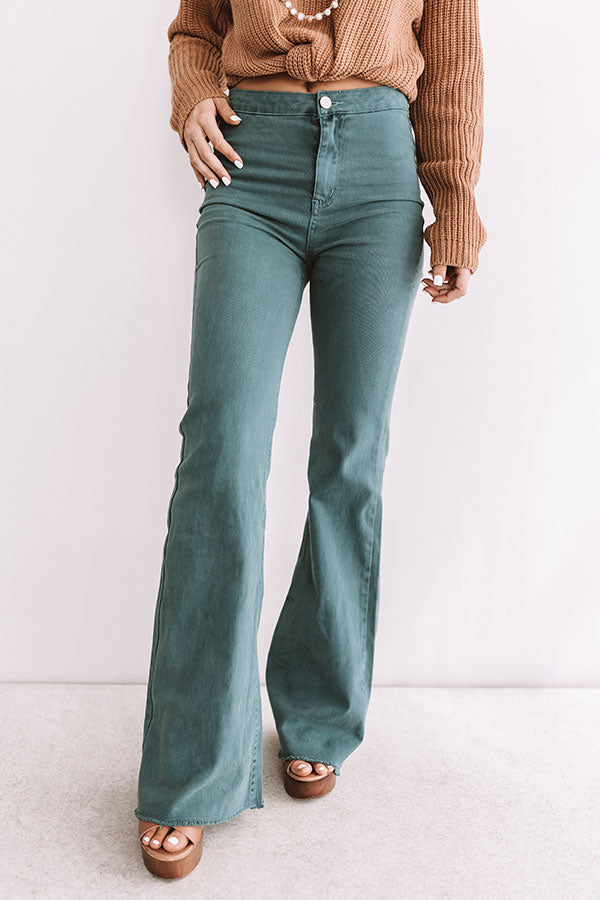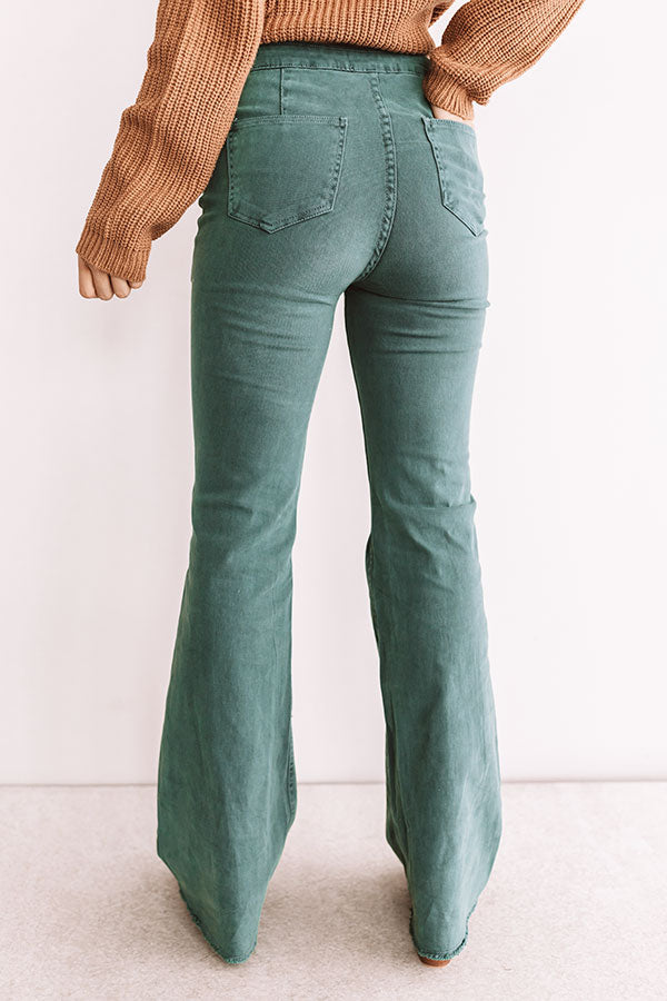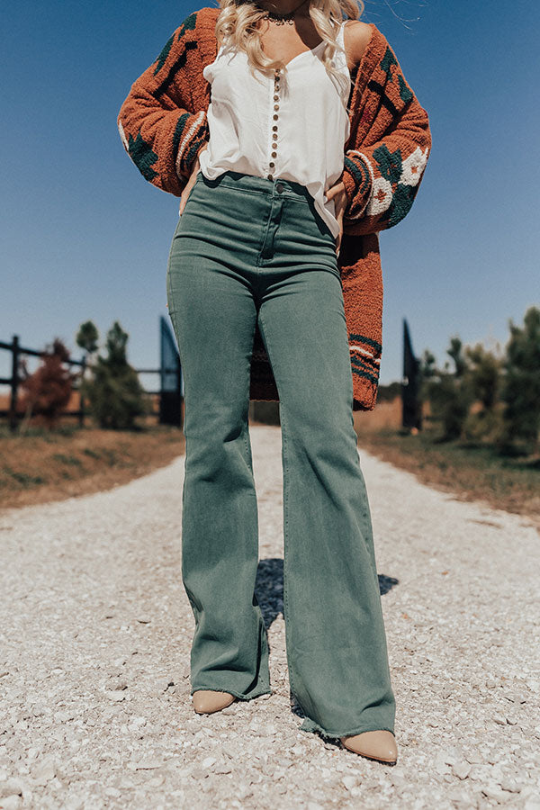 You are sure to love "The Charli" pants featuring a lush meadow color, a wide banded high waistline, two pocket cuts, a hidden zip with a button closure, and stretchy, figure flattering fit that leads into a trendy and flared raw hem cut! These trendy bottoms will take you from season to season when you wear with your favorite open toed heel and tank top in the summer and with booties and a sweater in the fall!