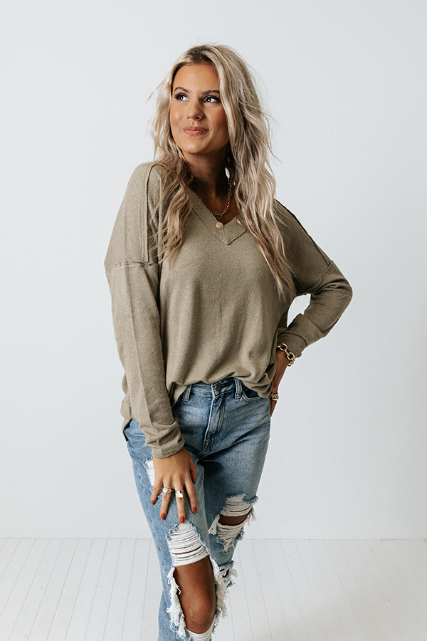 Chill down at the end of the day in this comfy sage colored shift top featuring soft lightweight material, a v-cut neckline, long loose sleeves, and a relaxed silhouette that ends in a rounded hemline! Measurements