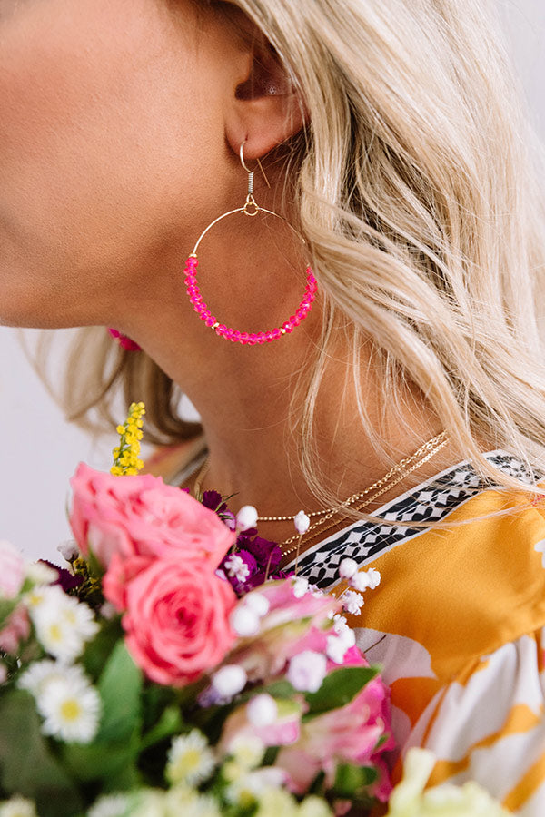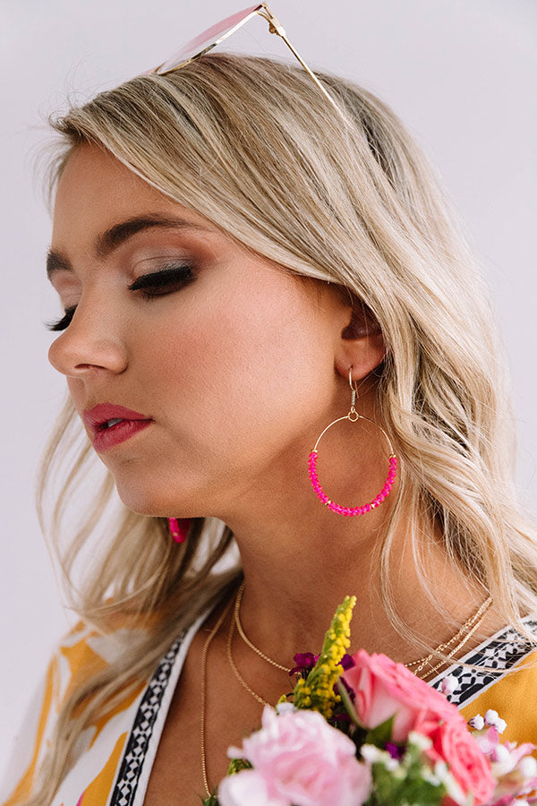 The "Chloe Earring 8" features a dainty 1.7" gold hoop adorned with pink and gold accents!