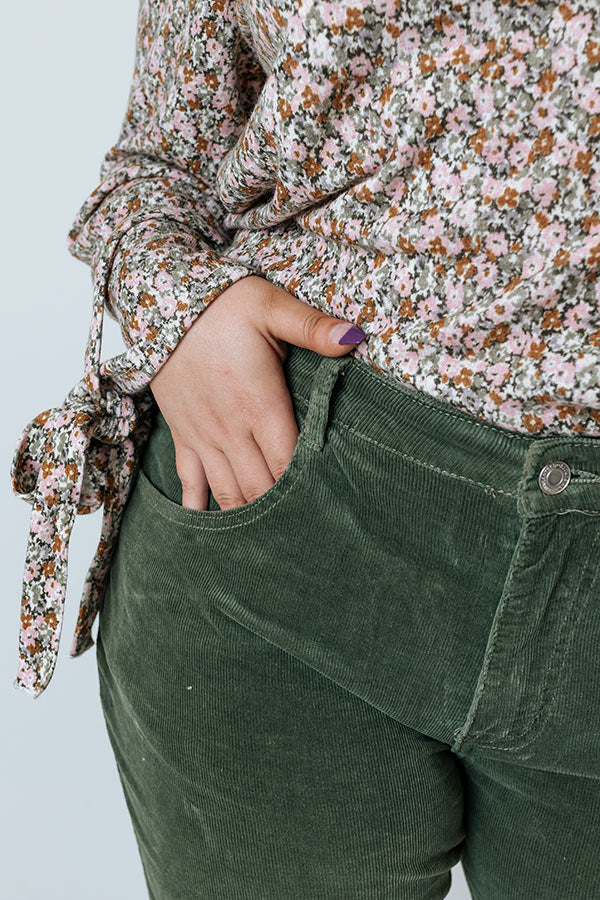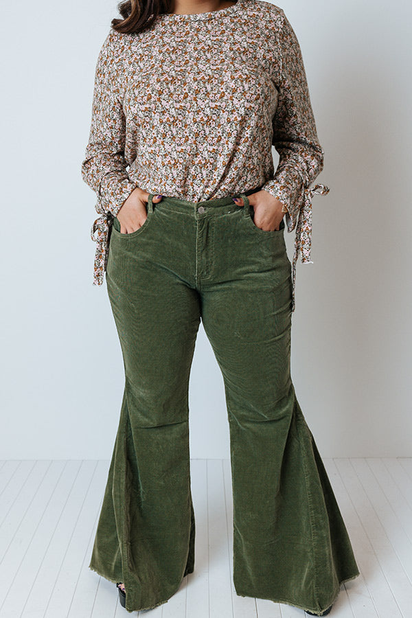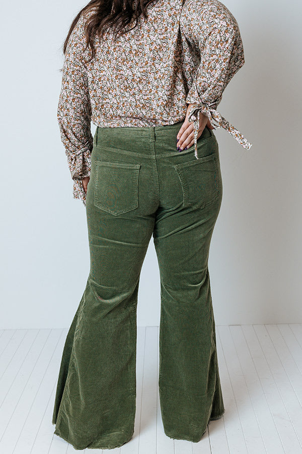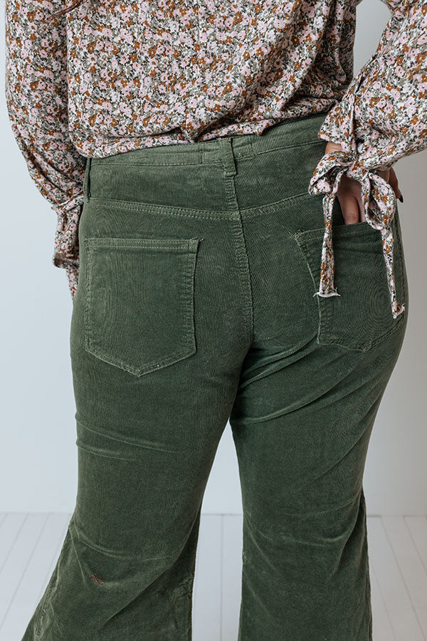 The Cooper High Waist Corduroy Flares In Olive Curves