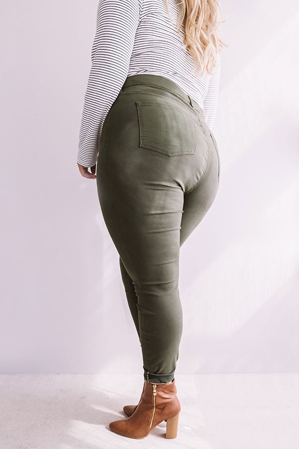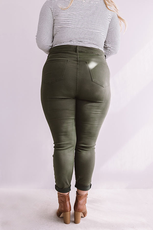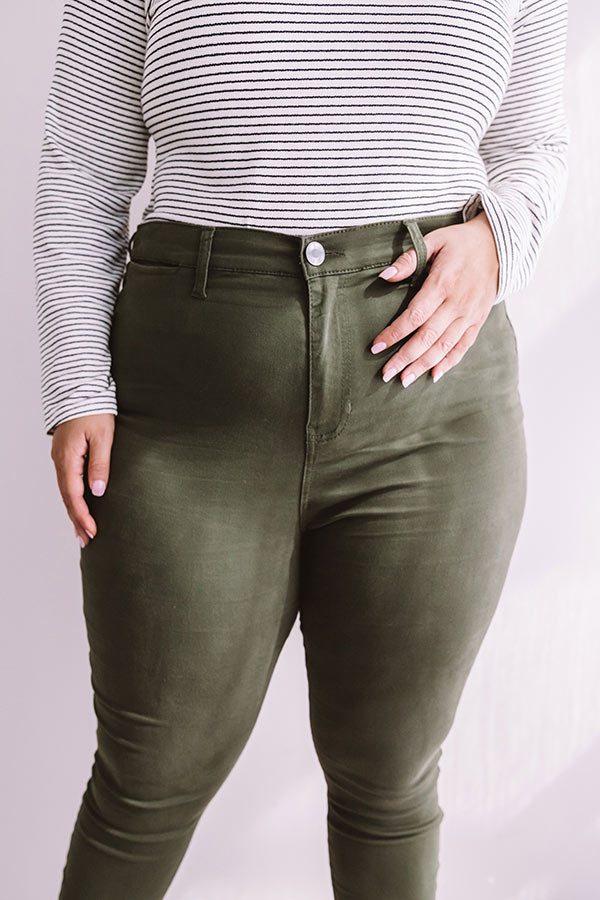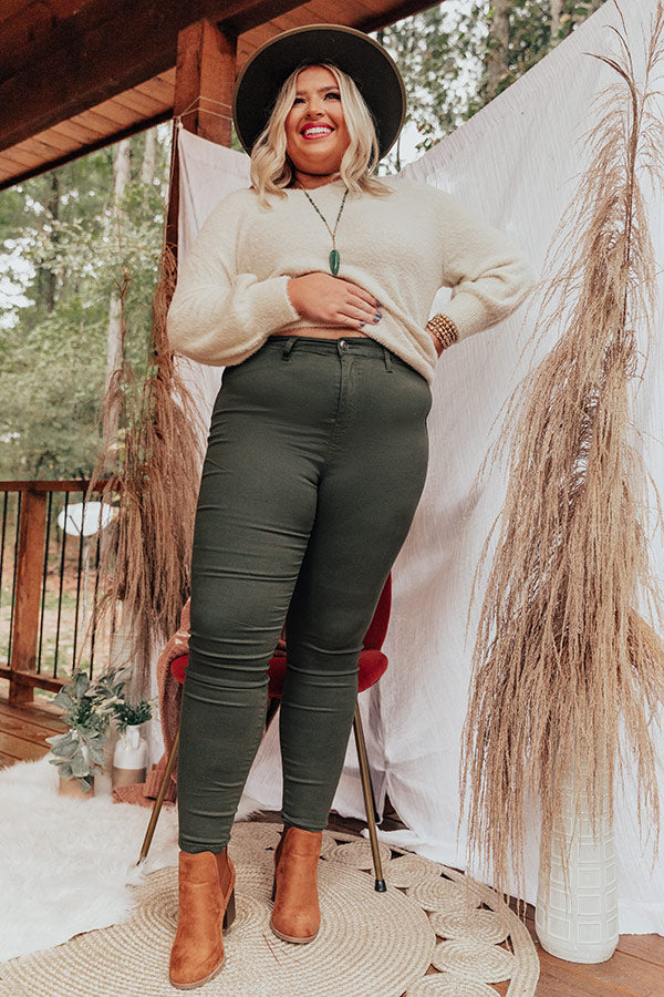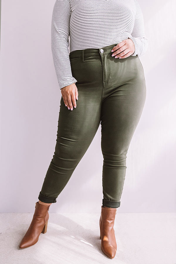 Plus Size - Make a statement in "The Cordelia" olive colored bottoms! Drenched in the perfect fall hue, these skinnies are surprisingly versatile with plenty of stretch, a skinny fit, a high waistline, ankle length hems, belt loops, and back pockets! Pair these dreamy skinnies with all your softest fall sweaters and cozy cardigans!