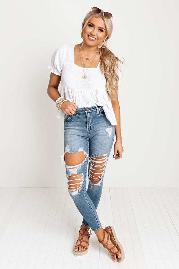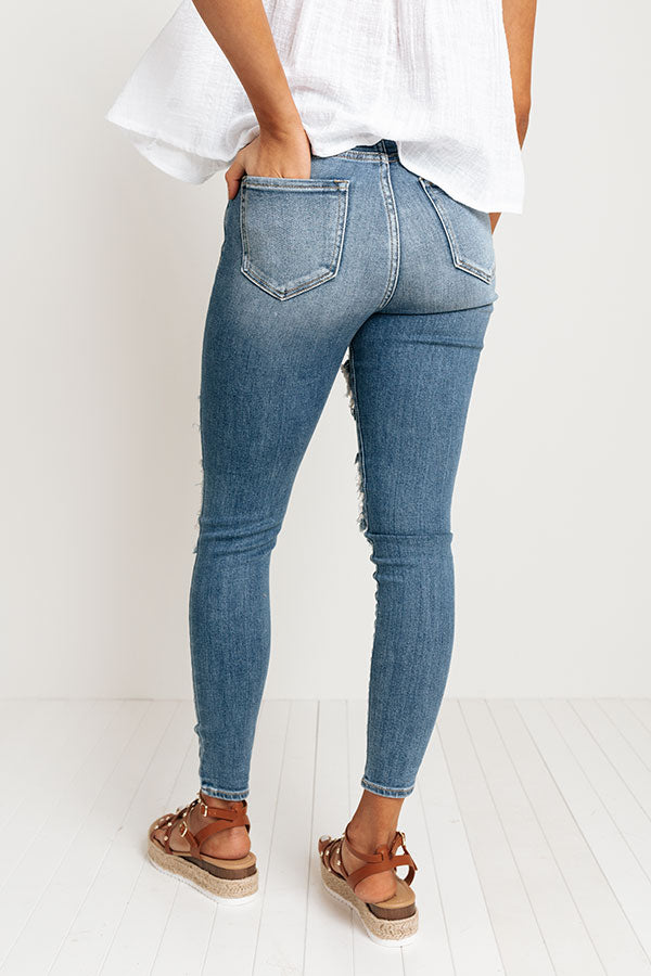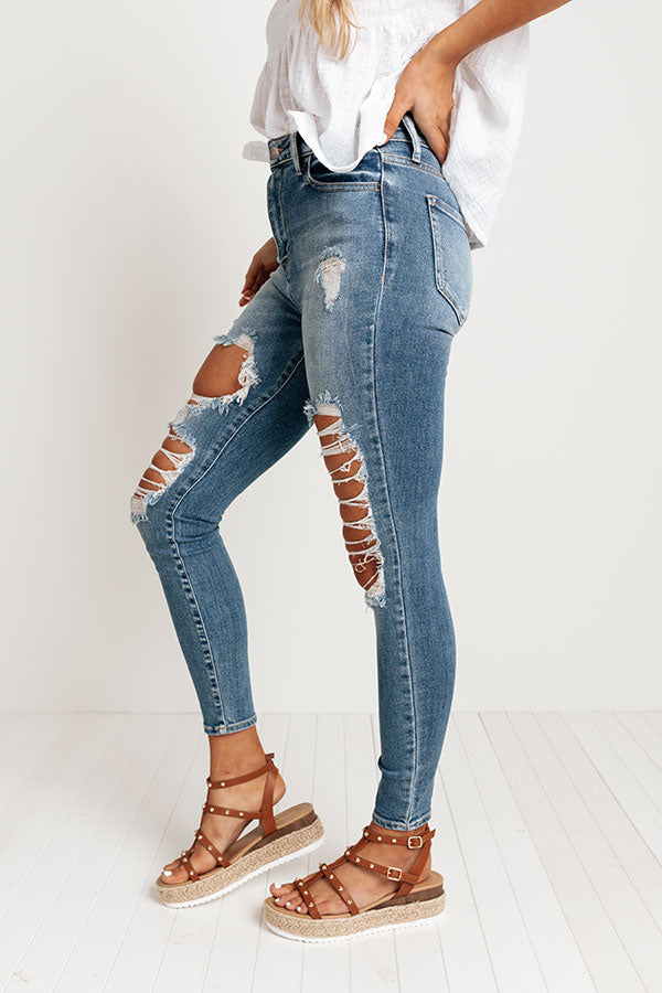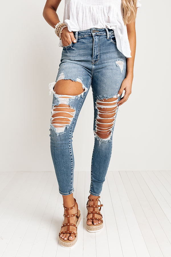 Life is more than just fitting into your jeans, but we believe you will LOVE the look and feel of our 'Coy' skinnies featuring lightweight medium wash denim material with ultra distressed detailing and subtle accent fading, a high waistline with belt loops, four pocket cuts, a hidden zip fly with a button closure, and a flattering relaxed silhouette that falls into ankle-length hemlines!
