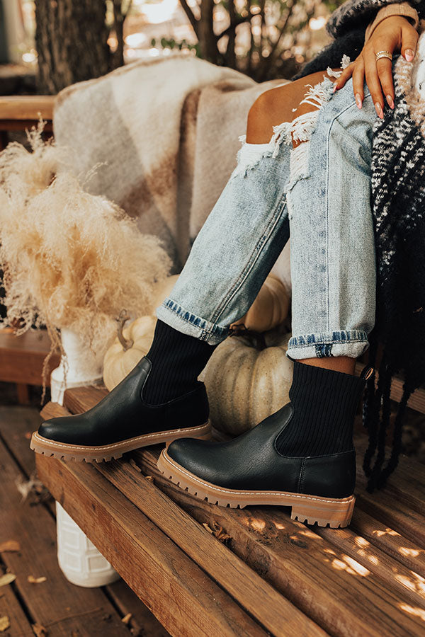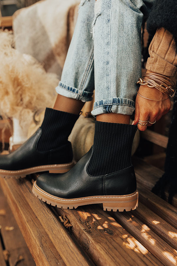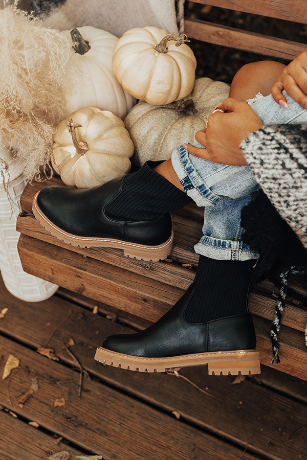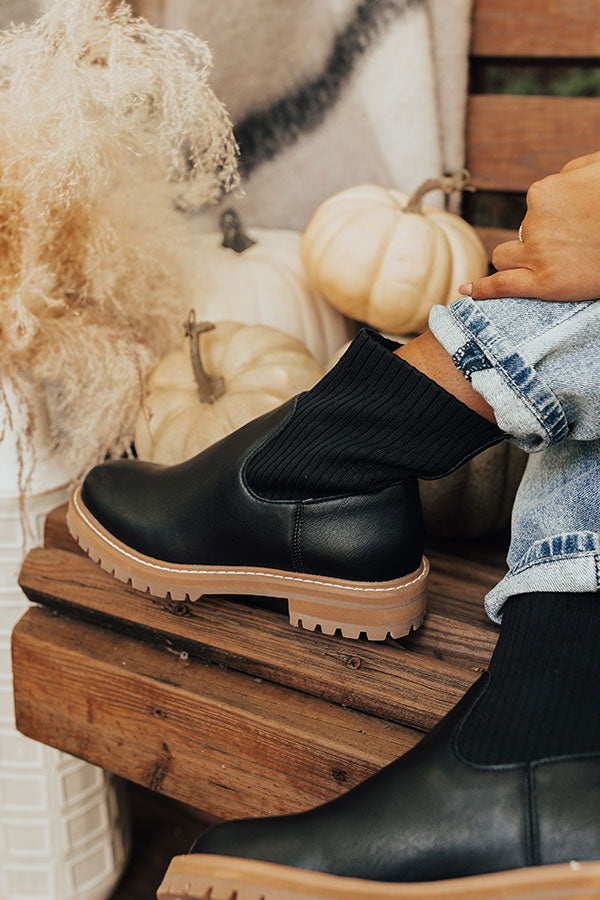 You won't find a more versatile fall boot than our trendy black 'Craine' boot featuring faux leather material, a rounded closed toe, a flat sole, elastic sock fabric around the ankle, and a lightweight above-the-ankle silhouette! This boot runs more true to size.