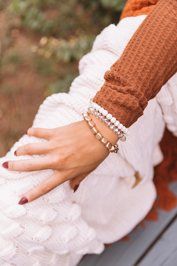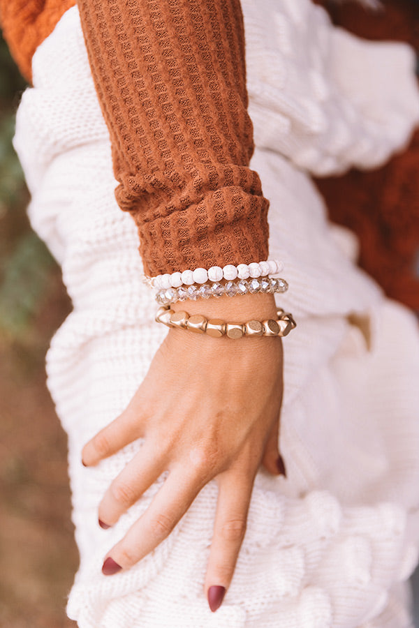 The "Denver Stretchy Bracelet" is sold as a set of three featuring neutral hued beads!