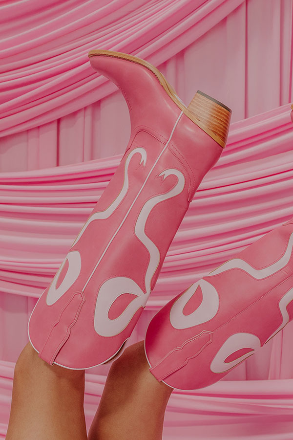 The Dolly Faux Leather Cowboy Boot in Pink