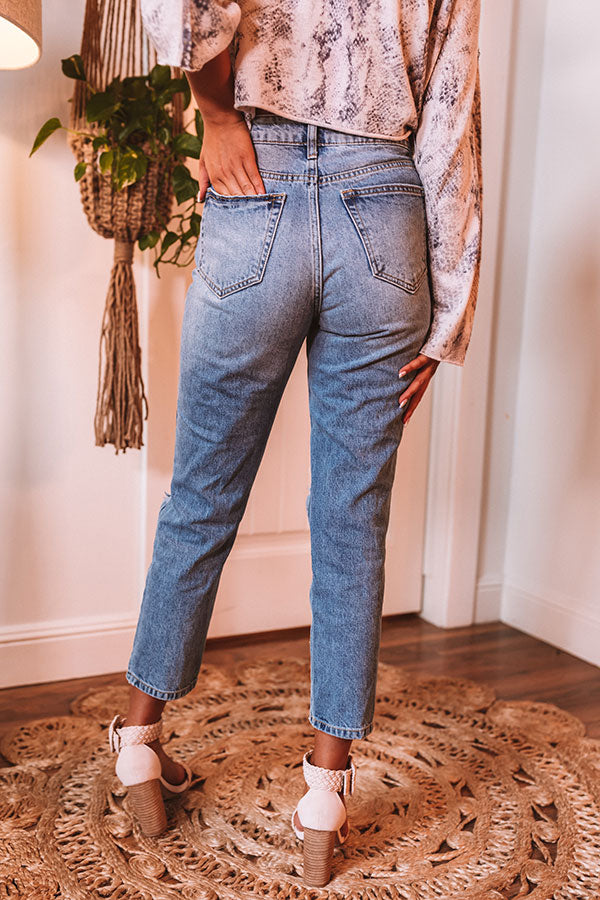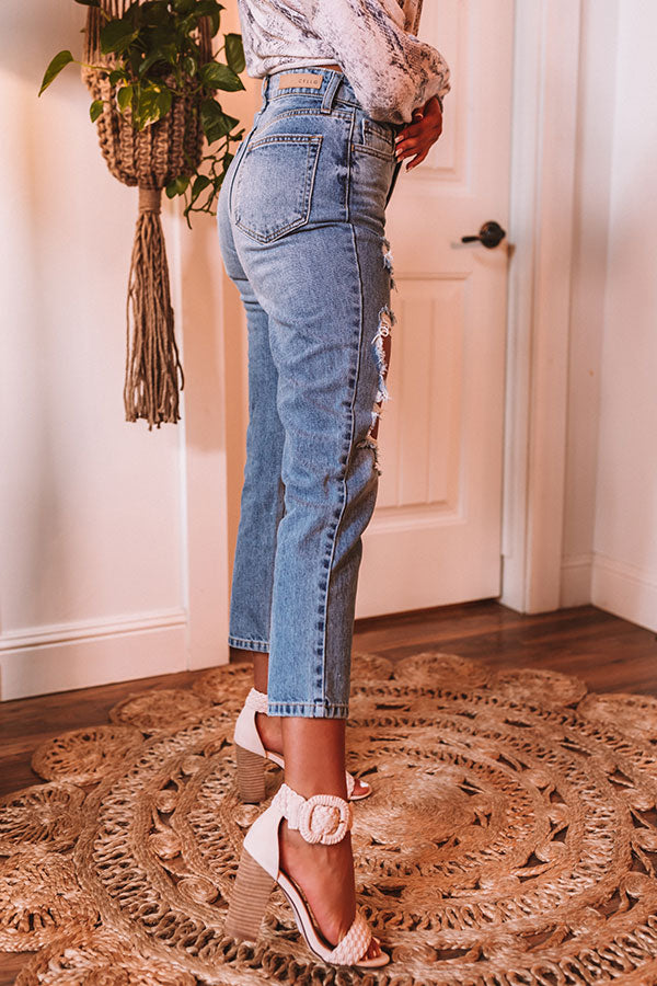 Life is more than just fitting into your jeans, but we believe you will LOVE the look and feel of our "Edie" jeans featuring lightweight medium wash denim material with ultra distressed detailing and subtle accent fading, a high waistline with belt loops, four pocket cuts, a hidden zip fly with a button closure, and a relaxed figure flattering silhouette that falls into ankle-length hemlines that can be cuffed! These trendy bottoms will take you from season to season when you wear with your favorite open toed heel, sunnies, and tank top in the summer and with booties, a faux suede hat, and a sweater in the fall!