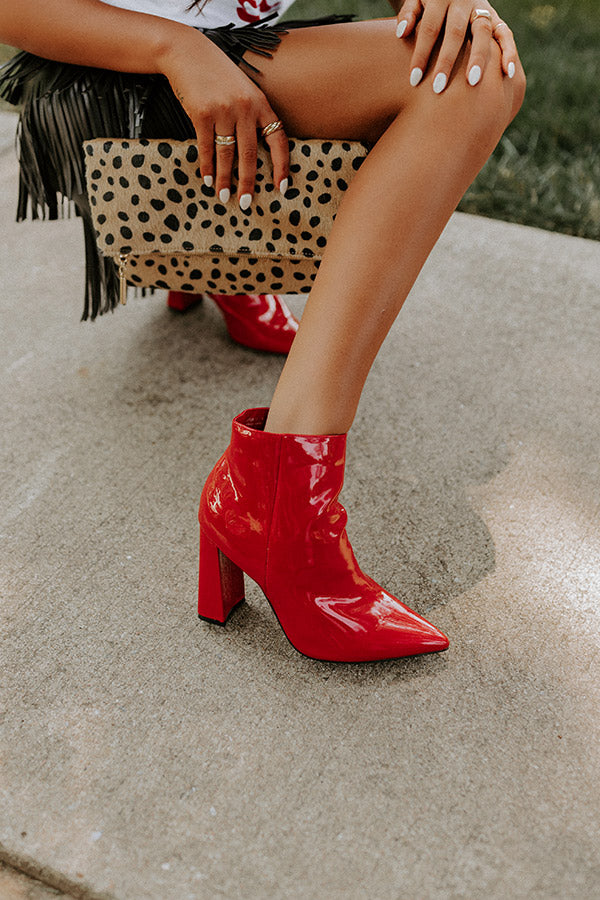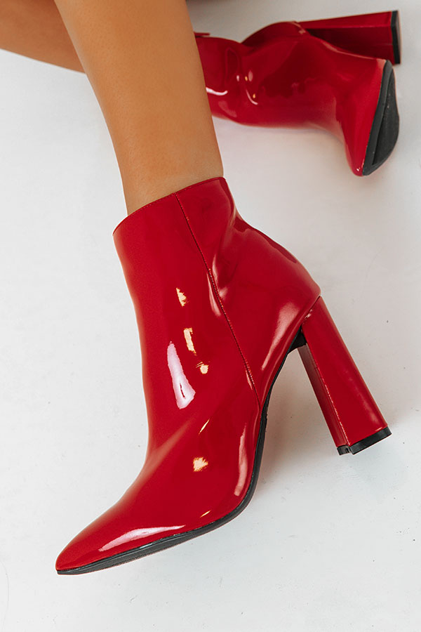 People are sure to be envious of your shoe game when you complete your look with our black 'Eldora Patent Bootie' featuring sleek material, a pointed closed toe, a 4.2-inch block heel, an inside ankle zip closure, and a chic over-the-ankle silhouette! This patent bootie runs more true to size.
