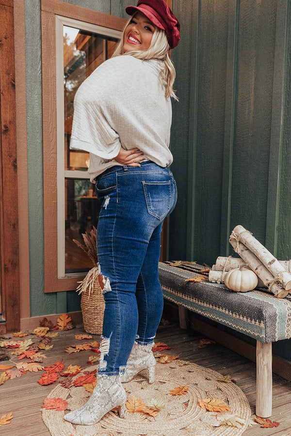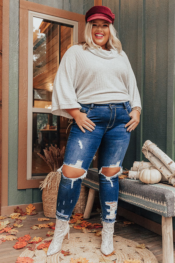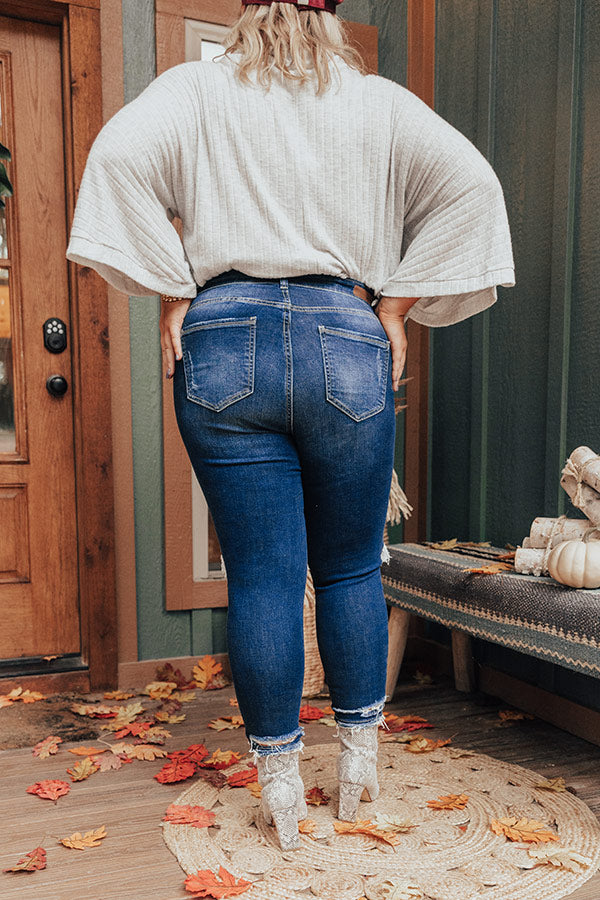 Plus Size - Life is more than just fitting into your jeans, but we believe you will LOVE the look and feel of our adorable "Ella" skinnies featuring lightweight dark wash denim material with distressed detailing and subtle accent fading, four pocket cuts, a hidden zip fly with a button closure, a midrise waistline with belt loops, and a form fitting silhouette that falls into frayed ankle-length hemlines that can be cuffed!