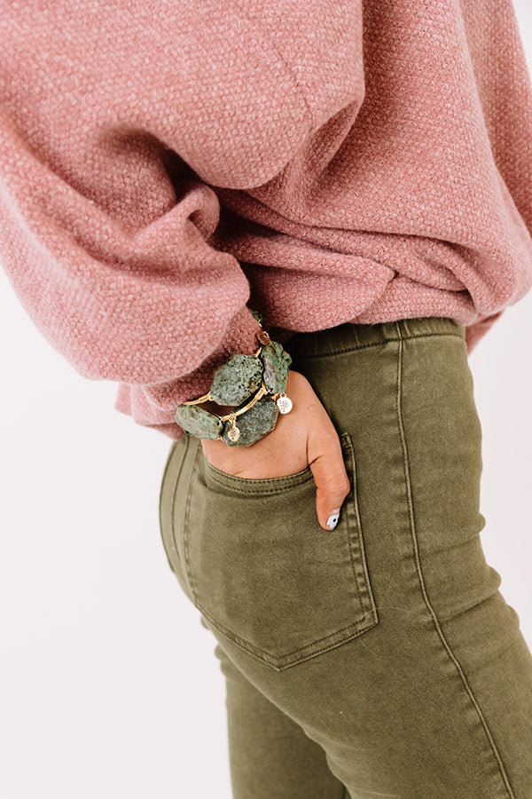 The stunning 'Ember Bracelet' features a gold plated copper wire-wrapped bangle adorned with three natural green hued stones! Due to the use of natural stones, stones may vary in size, shape or color. Each bangle sold separately