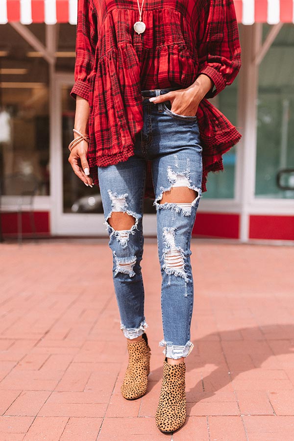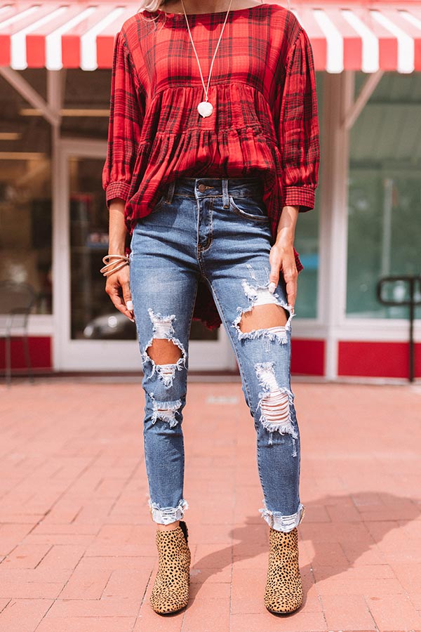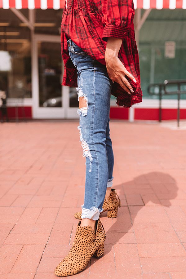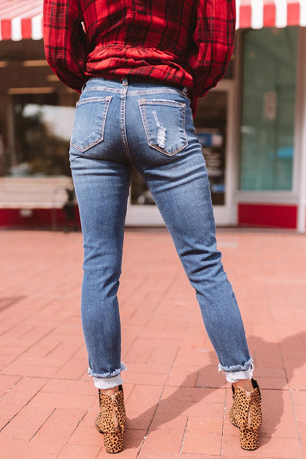 Life is more than just fitting into your jeans, but we believe you will LOVE the feel and look of "The Etta" skinnies with their high waist, distressed detailing, dark wash color, frayed ankle hems, 5 pocket cut, belt loops, and a hidden zip with a button closure! These trendy bottoms will take you from season to season when you wear with your favorite open toed heel and tank top in the summer and with booties and a sweater in the fall!