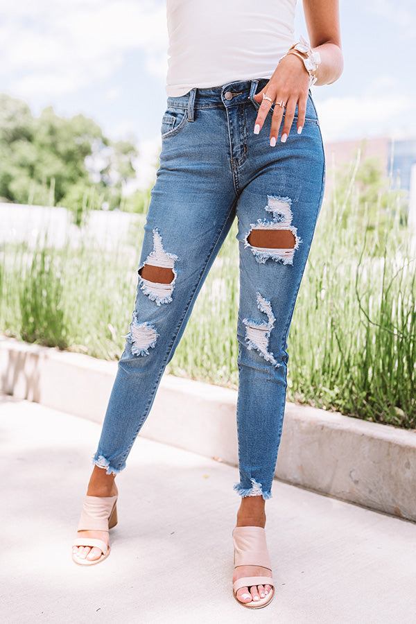 The Etta High Waist Distressed Ankle Skinny In Medium Wash