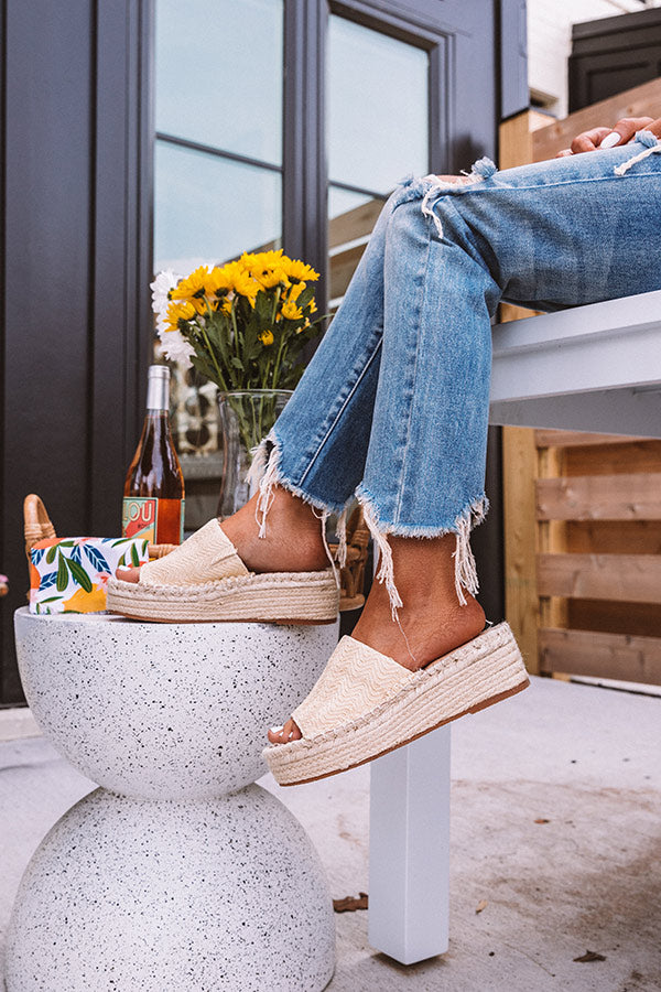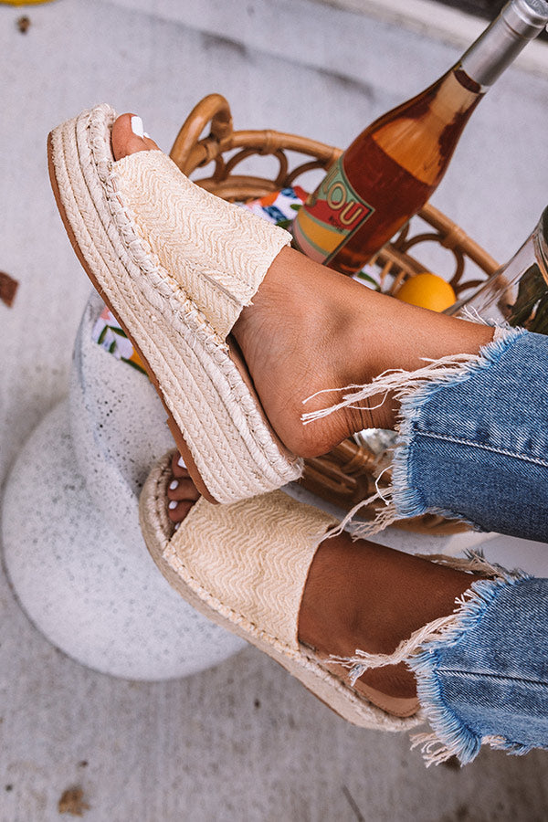 There is no easier way to slip into summer in style than with our stylish cream hued 'Fiera' espadrille featuring a wide woven over-the-foot strap, a rounded open toe, a flat 2-inch lifted jute sole, and a lightweight slip-on silhouette! This espadrille runs more true to size.