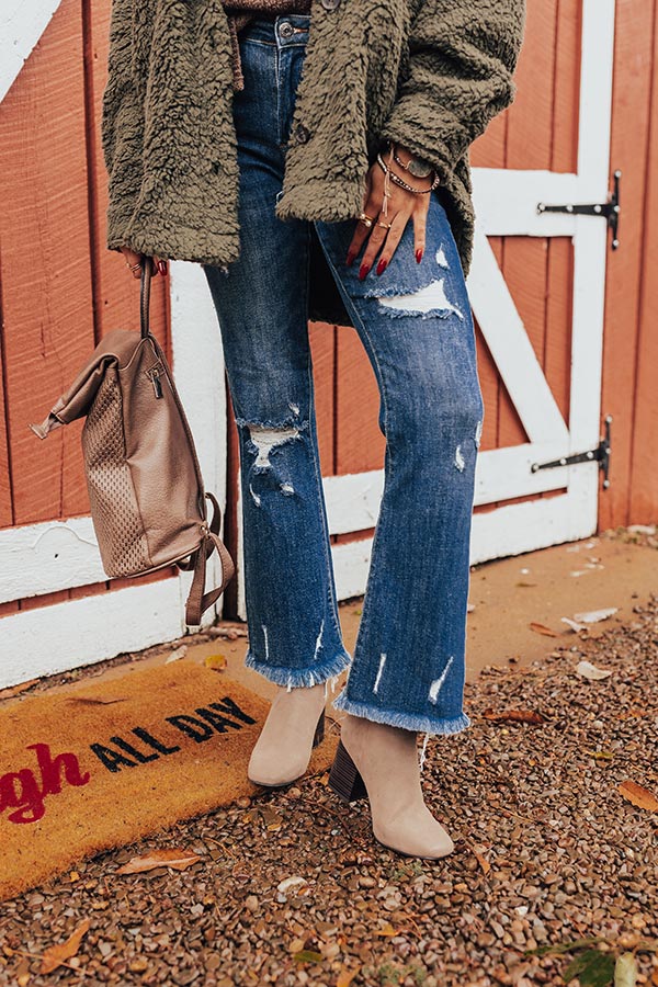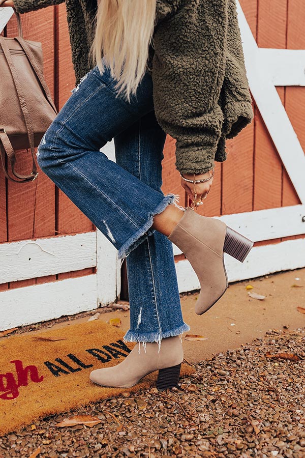 Step out in style in our versatile natural hued 'Fulton' bootie featuring faux nubuck material, a rounded closed toe, a 3.3-inch block heel height, and a zip closure on the heel! This bootie runs more true to size.