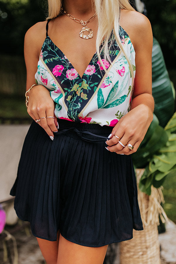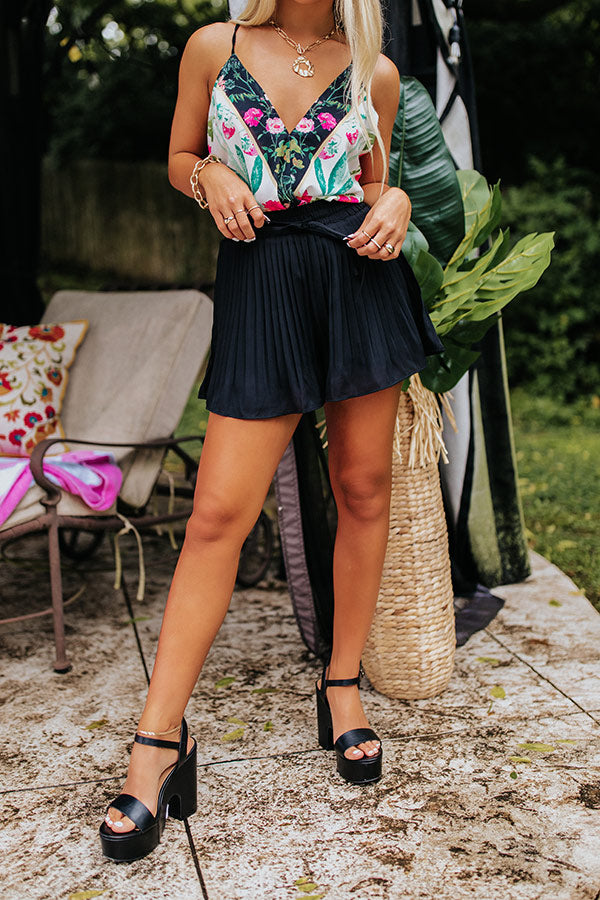 Sway through summer in style with our chic black 'Galilea' shorts featuring lightweight breezy material with subtle pleated texturing, an wide smocked waistline with a tie belt, and a relaxed silhouette that falls into uneven upper-thigh length hemlines!