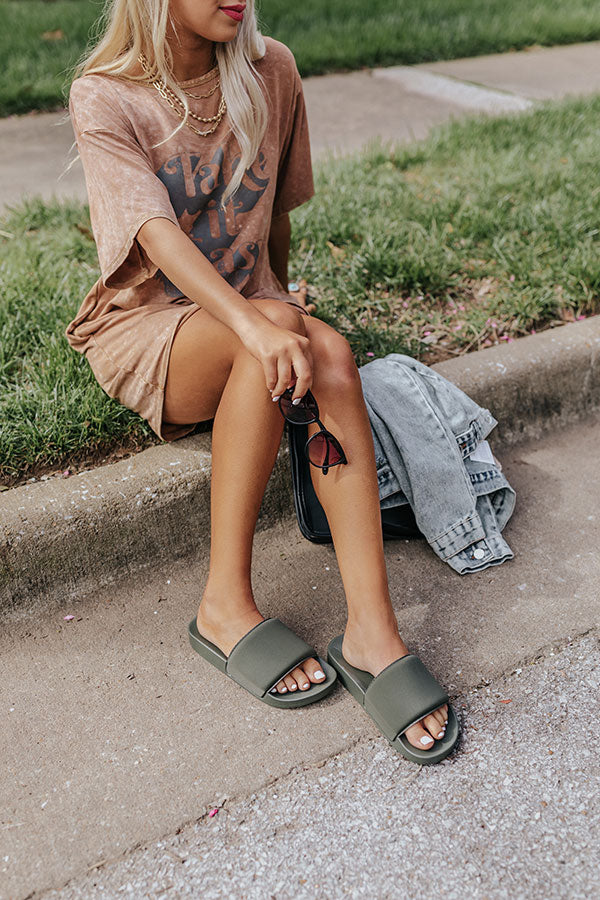 Slide effortlessly into the warmer months with our sporty deep forest hued 'Galloway Sandal' featuring a wide over-the-foot strap, a rounded open toe, a flat sole, and a lightweight slip-on silhouette! This sandal runs more true to size.