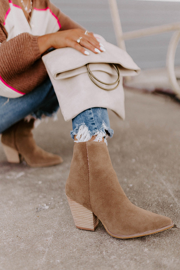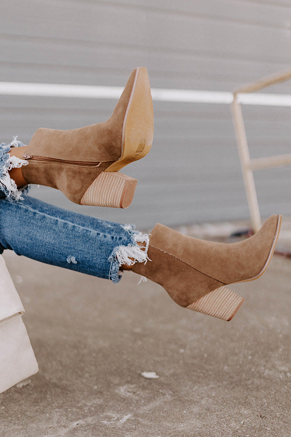The perfect transitional shoe, our trendy brown 'Gentry Boot' features faux suede material, a closed pointed toe, a 3.5-inch block heel, and an inside-ankle zip closure! This boot runs more true to size.