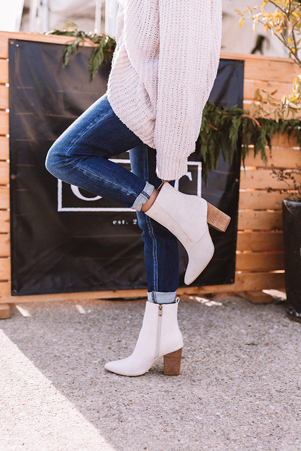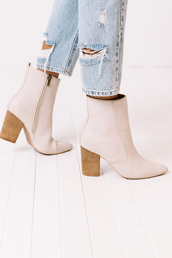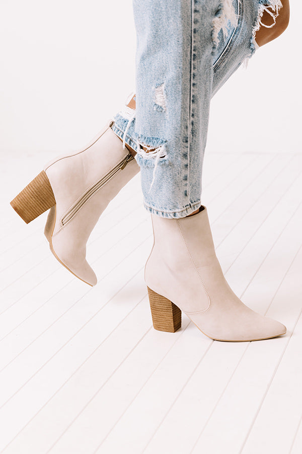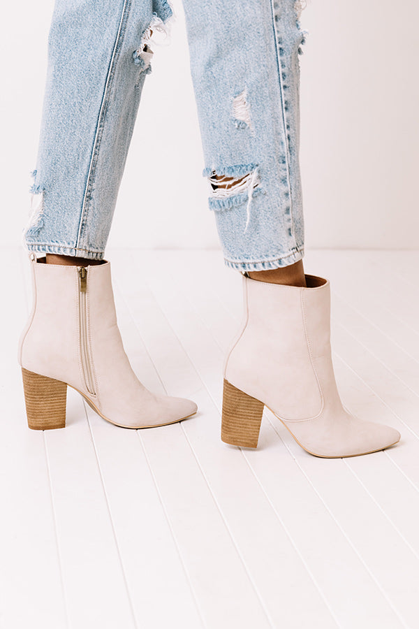 Step into style with our trendy birch colored 'Gia' bootie featuring sleek faux leather material with animal print texturing, 3.5-inch block heels, pointed closed toes, inside ankle zip closures, and a lightweight above-the-ankle silhouette! This bootie runs more true to size.