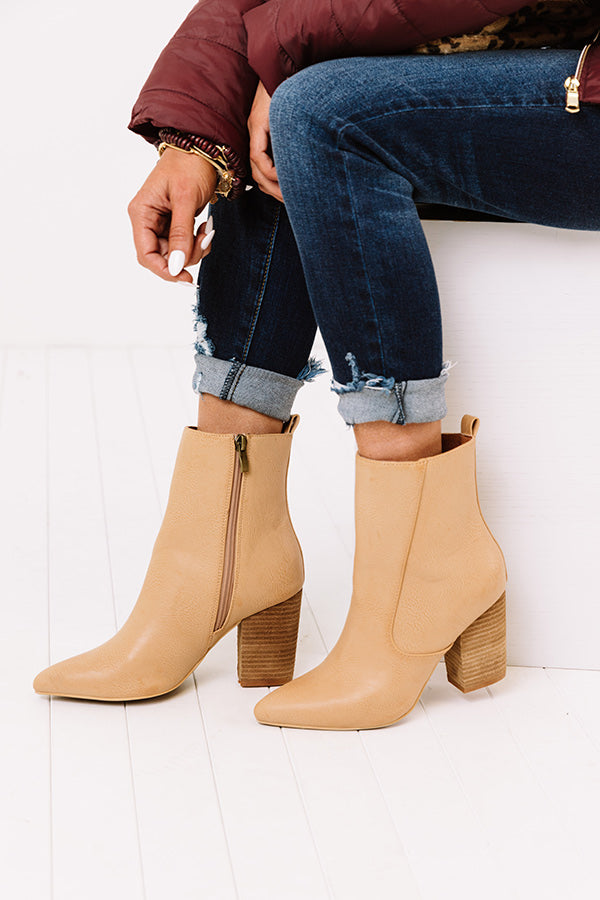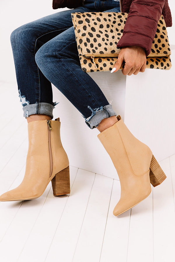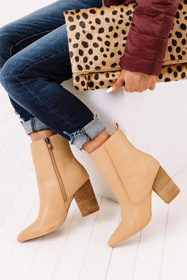 Step into the holidays in style with our stylish iced mocha colored 'Gia' bootie featuring sleek faux leather material with animal print texturing, 3.5-inch block heels, pointed closed toes, inside ankle zip closures, and a lightweight above-the-ankle silhouette! This bootie runs more true to size.