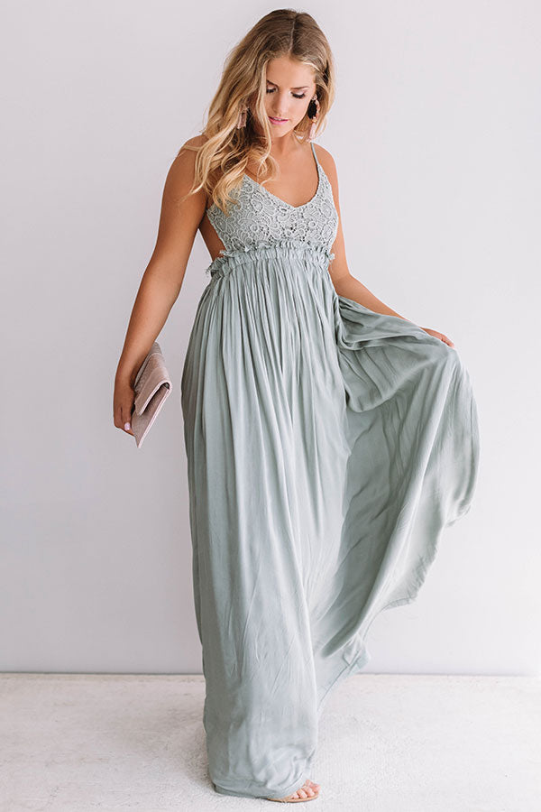 Make your entrance in this dreamy maxi! The Grand Reveal is a staff and customer favorite for a reason! We love the super flowy skirt, and it runs long for all of you tall girls out there! This would look perfect at a beach wedding! Features an unfinished hem on the bodice and bottom of the dress and crimped fabric to give the dress a comfortable, vintage feel. The waist is elastic, and the dress is backless. The measurements for the bust and waist indicate the circumference of the fabric when the garment is laying flat, as opposed to on a person. Please refer to the model's measurements for an idea of fit. Measurements