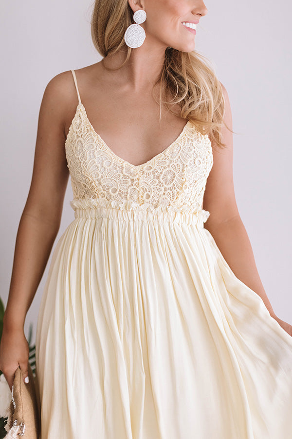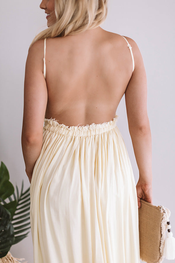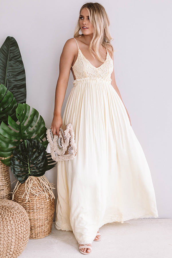 Make your entrance in this dreamy maxi! The Grand Reveal is a staff and customer favorite for a reason! We love the super flowy skirt, and it runs long for all of you tall girls out there! This would look perfect at a beach wedding! Features an unfinished hem on the bodice and bottom of the dress and crimped fabric to give the dress a comfortable, vintage feel. The waist is elastic, and the dress is backless. The measurements for the bust and waist indicate the circumference of the fabric when the garment is laying flat, as opposed to on a person. Please refer to the model's measurements for an idea of fit. Measurements
