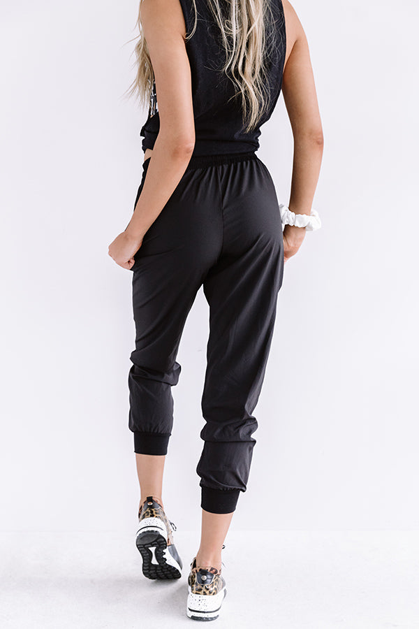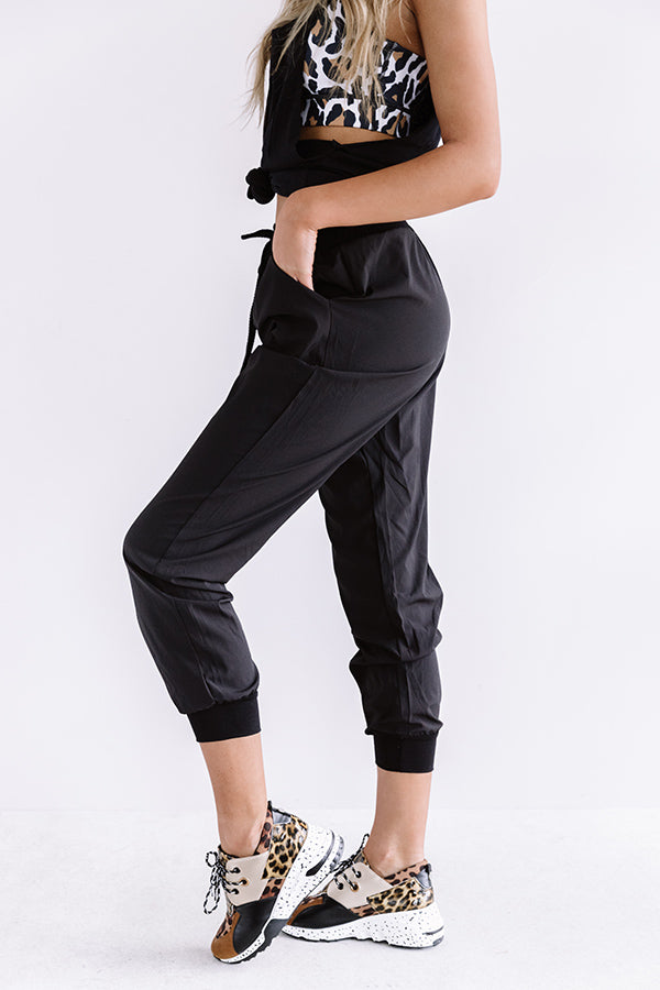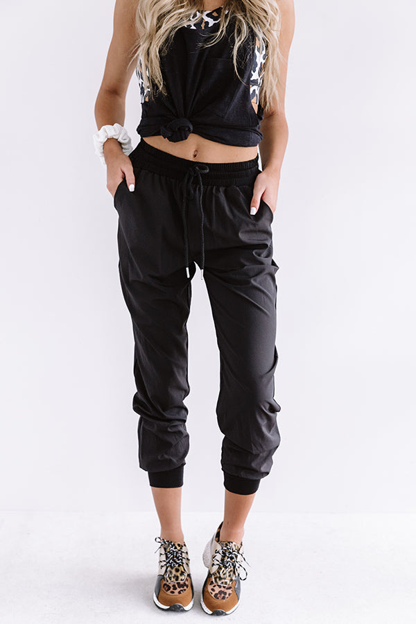 Stay chic AND cozy in our black "Grove" joggers featuring sleek lightweight material, a high elastic waistline with a tie belt closure, accent side and back pockets, and a relaxed pants silhouette that falls into fitted ankle length hemlines! You can dress these cuties down with a black tank layered over a leopard sports bra, a white scrunchie, and matching trendy sneakers, but you can also style them up with a basic white tank layered under our "Fashions Latest Leopard Blazer," sunnies, "The Carolina Heel in Natural," and our "CEO Material Faux Leather Tote in Black!"