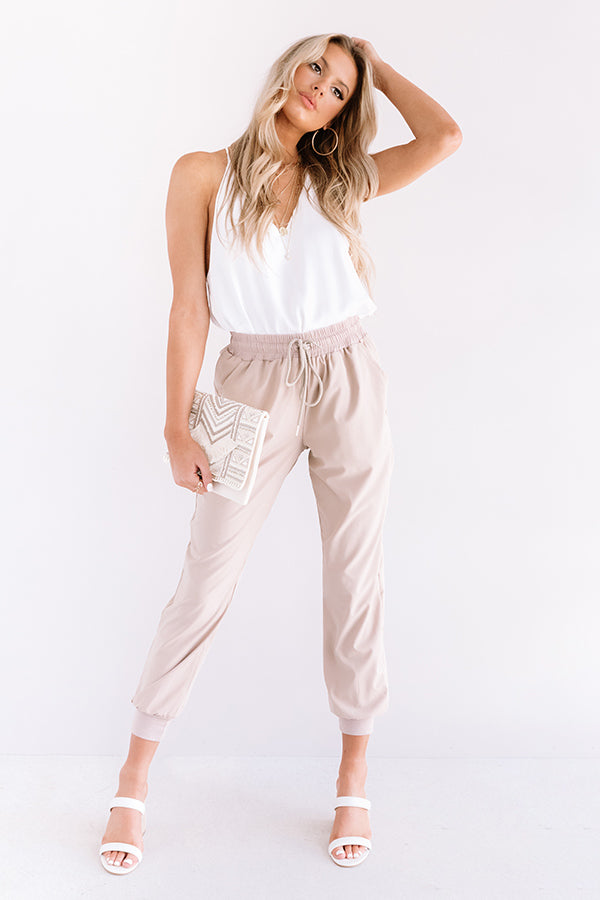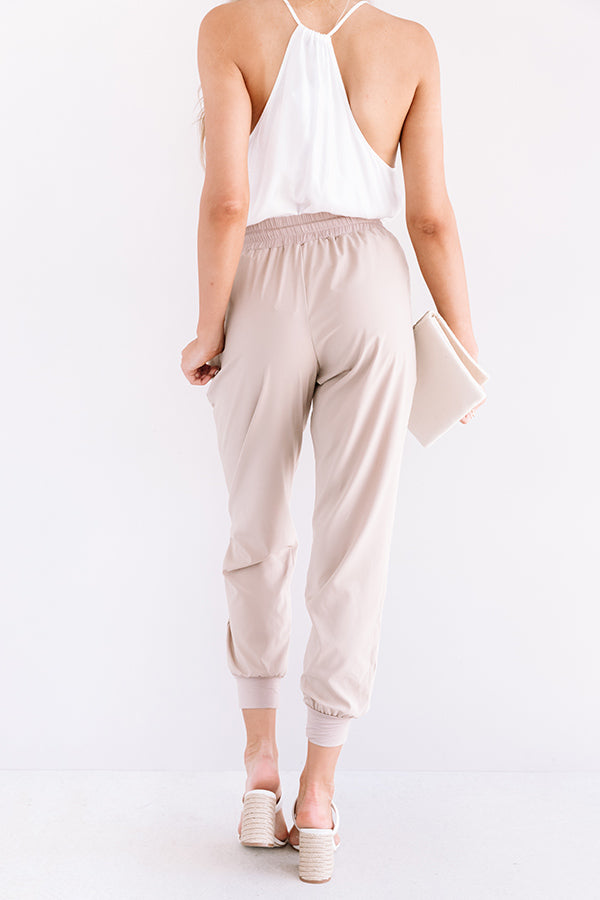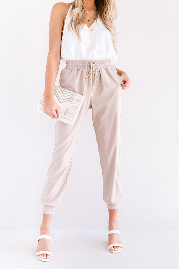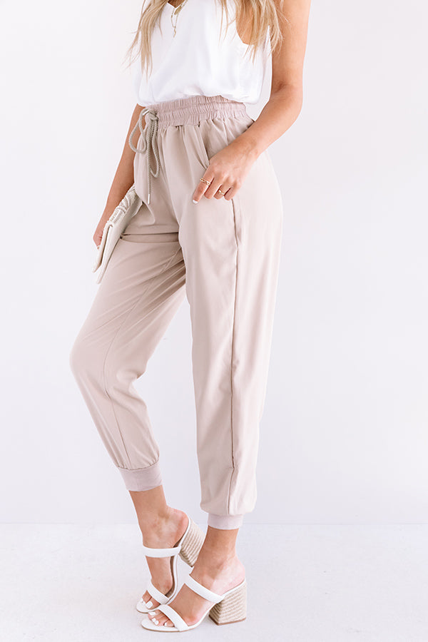 The Grove High Waist Joggers in Warm Taupe