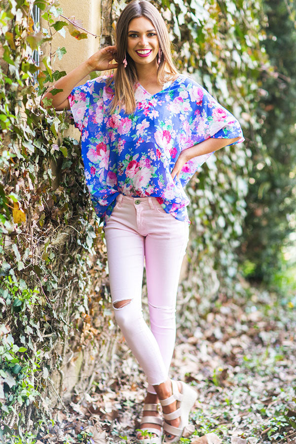 Live life in full bloom in "The Harper Tunic!" This blooming babe has a v-cut neckline, short kaftan sleeves & a breezy poly bodice that you are sure to adore. Whether you dress your look up with white skinny jeans, or down with your favorite pair of cut-offs, you are sure to look TOTALLY BLOSSOM in this fabulous floral tunic top!