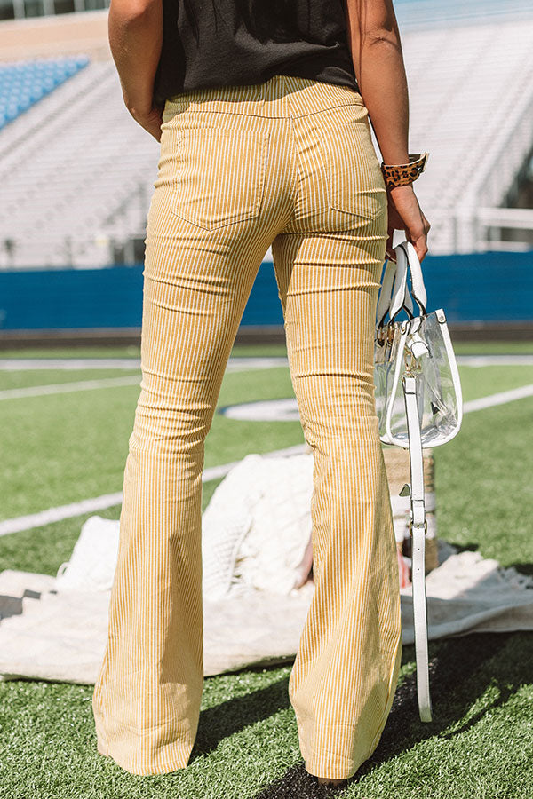 There is not better way to make a statement with your outfit than to wear bell bottoms! Plus, if they feature a high waist and stripes, there is no doubt your style will be the center of attention! So pair this mustard piece with some neutral wedges and a white shift tank for a modern twist on a boho chic summer look! Measurements