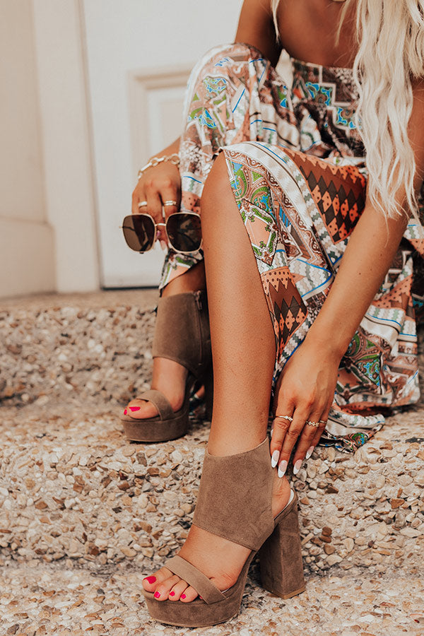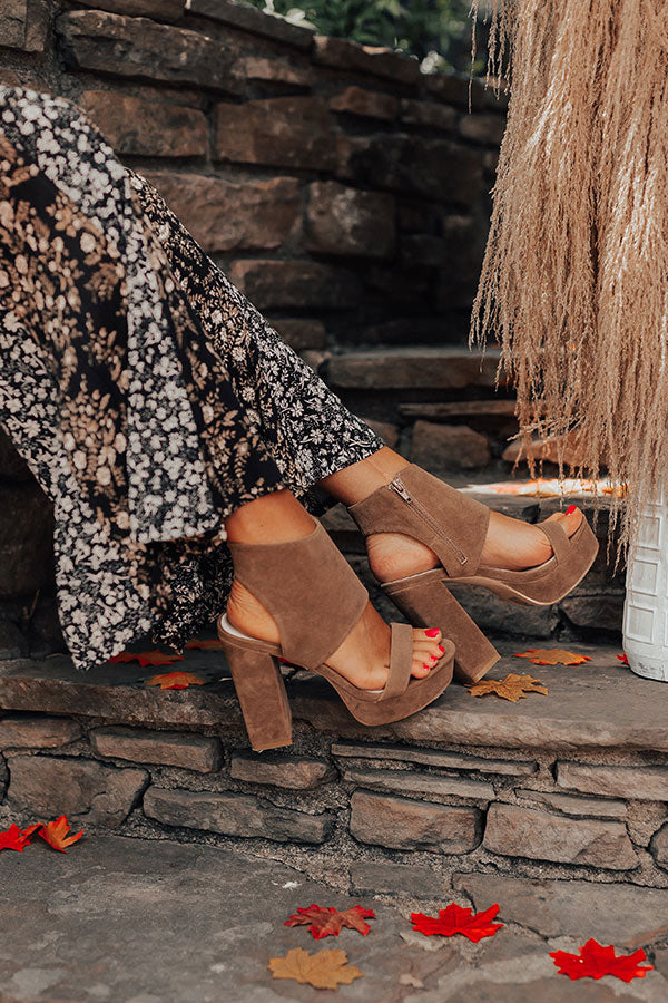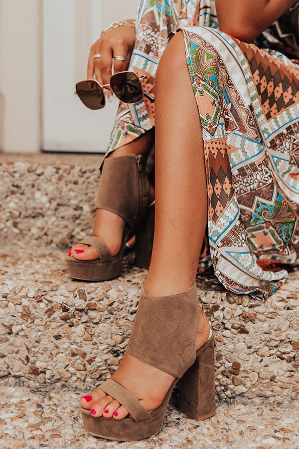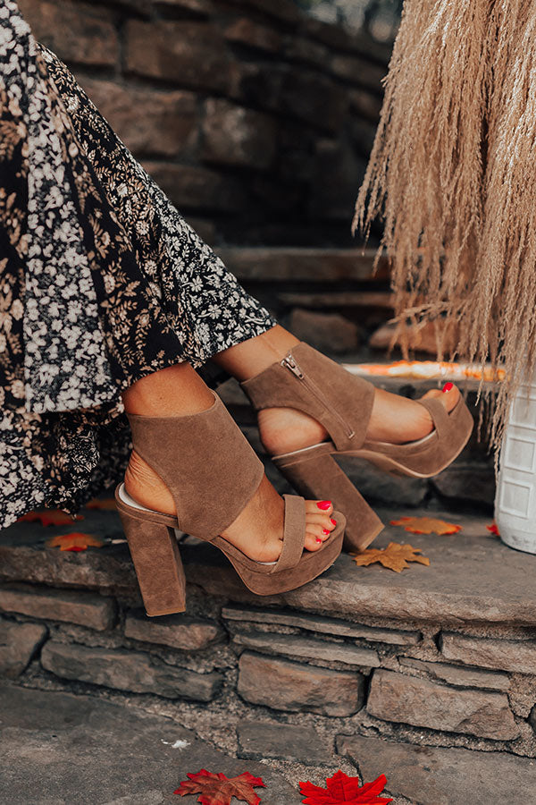 Comfort and cuteness combine to create our luxe brown 'Haynes' heel featuring faux suede material, a rounded open platform toe, a skinny over-the-foot strap, a 5.5-inch block heel height, an open heel, and a chic full wrap ankle silhouette with a zip closure on the inside! This heel runs more true to size.