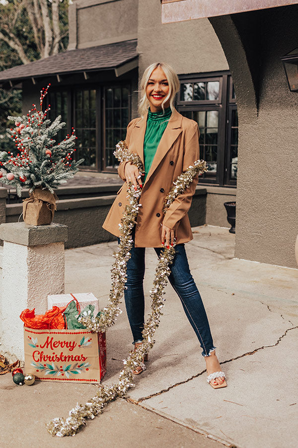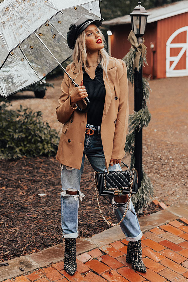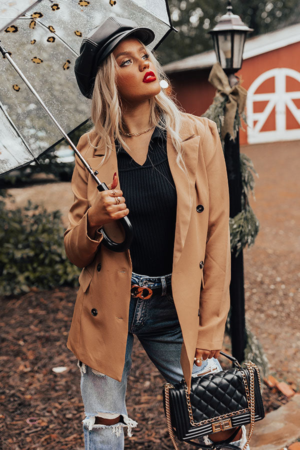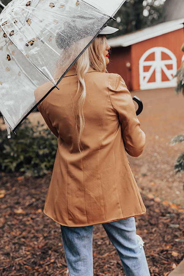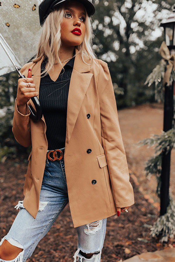 Keep it classy in our chic camel hued 'Hemsworth Blazer' featuring lightweight material, long loose sleeves, a three button up front with a collared neckline, two side pocket cuts with flap closures, and a relaxed silhouette that falls into a straight hemline!