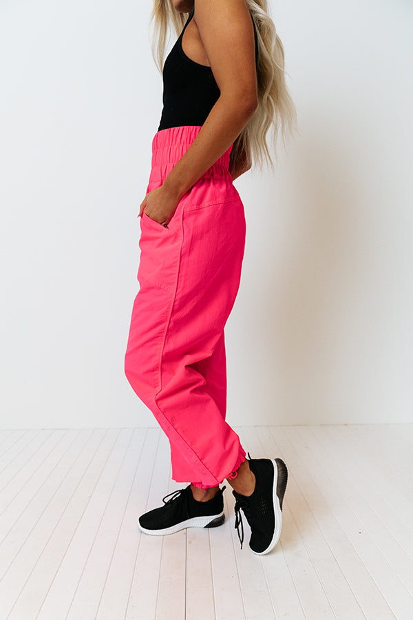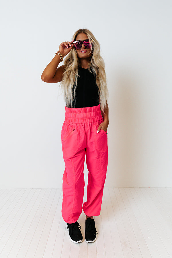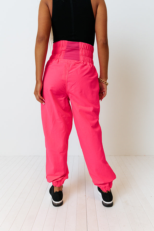 The Huxley High Waist Windbreaker Pants In Neon Hot Pink