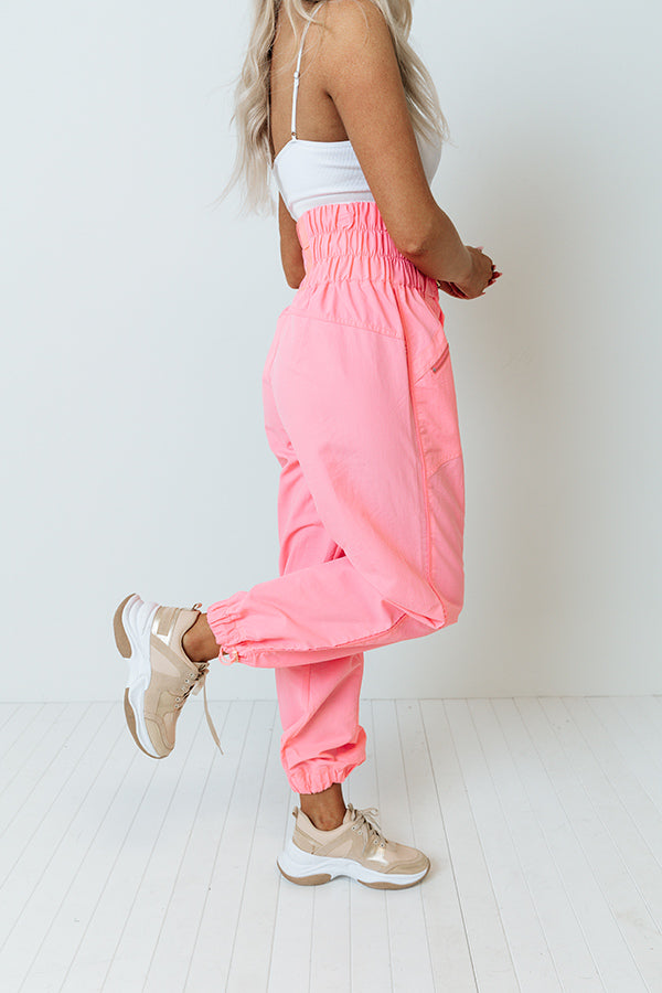 The Huxley High Waist Windbreaker Pants In Neon Pink