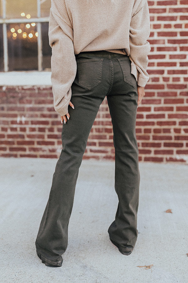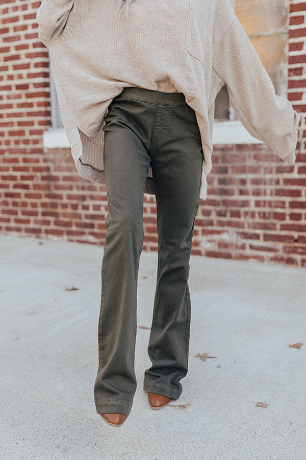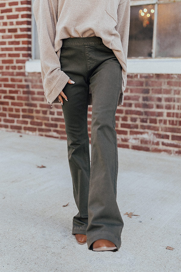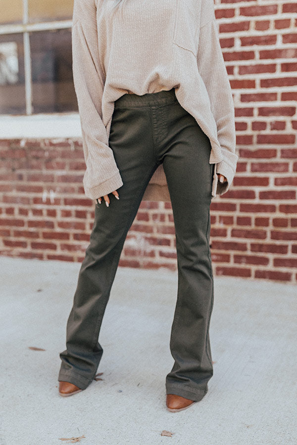 Stay groovy all year round with our army green colored "Isabella" bottoms featuring a midrise waist line, four pocket cuts, and a stretchy form fitting silhouette that falls into oversized flared hemlines! These retro bottoms will take your from season to season when you wear with your favorite open toed heel and tank top in the summer and with booties and a sweater in the fall!