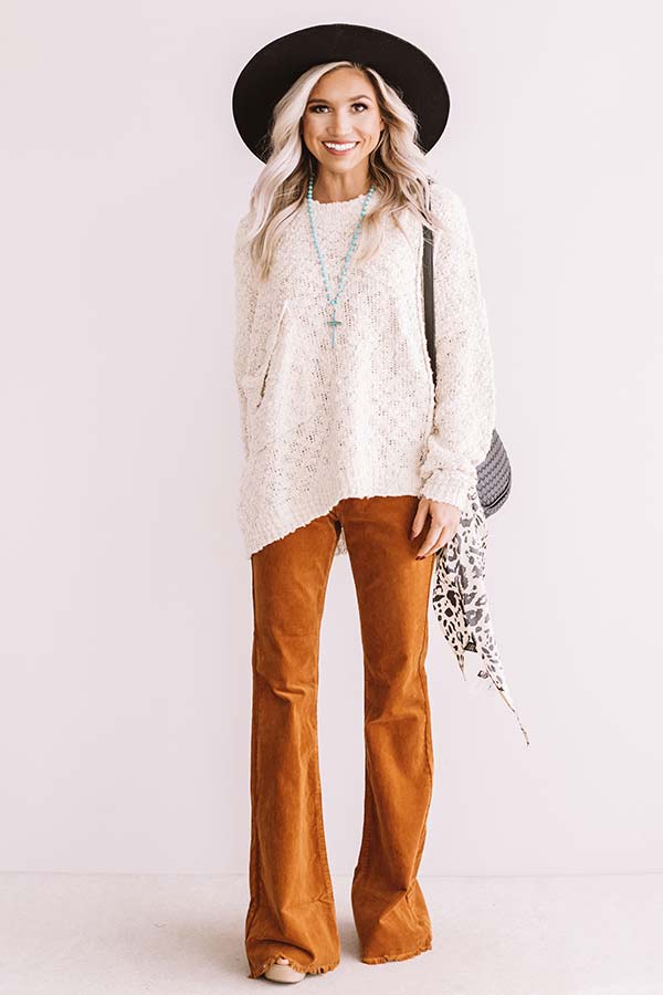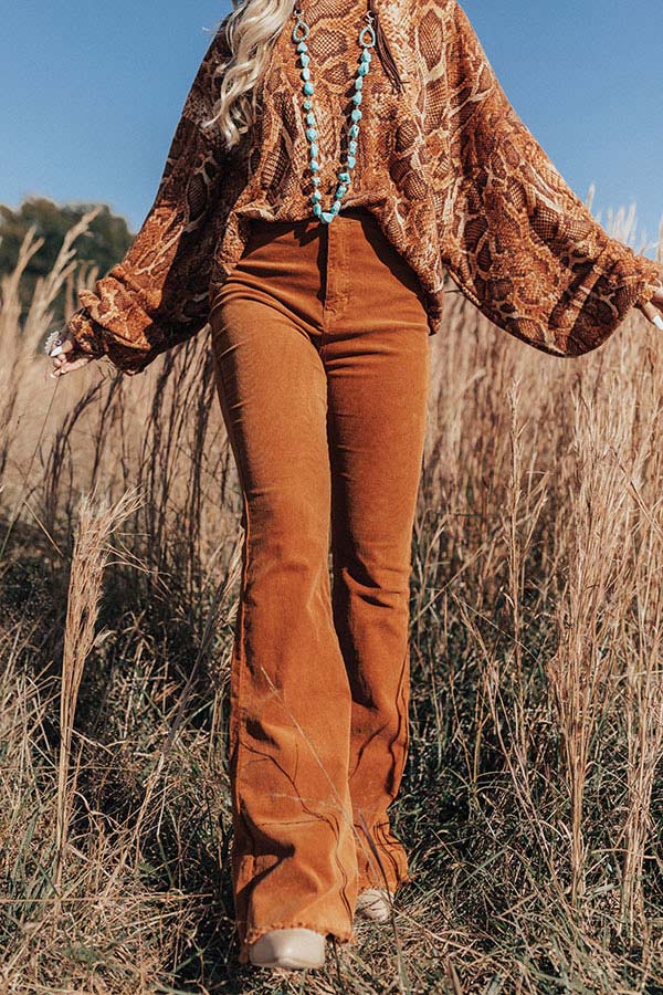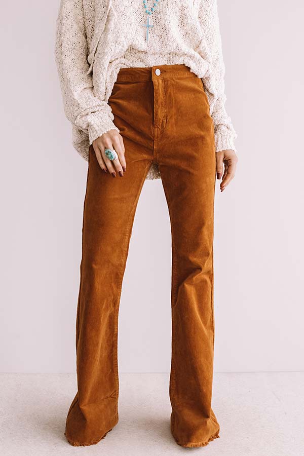 Life is more than just fitting into your jeans, but we believe you will LOVE the feel and look of "The Jasper" copper colored flares with their high waist, cropped hemlines, corduroy texture, oversized bell bottoms with frayed hems, two back pockets, and a hidden zip with a button closure! These retro bottoms will take you from season to season when you wear with your favorite open toed heel and tank top in the summer and with booties and a sweater in the fall!