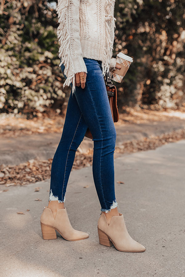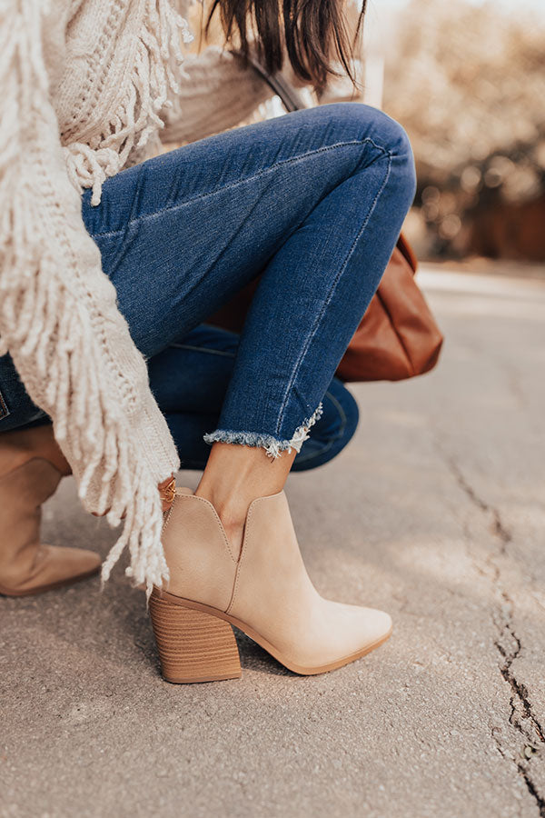 Put your best foot forward with our stunning light khaki colored "Joanna" bootie featuring sleek faux leather material, 3.5-inch block heels, pointed closed toes, zip heel closures, accent v-notches, and a lightweight ankle-high silhouette! These booties run more true to size.