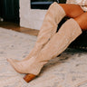 The Juliet Faux Suede Thigh High Boot in Iced Latte