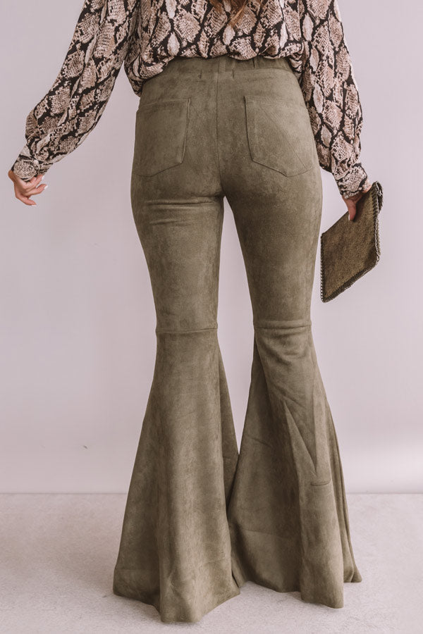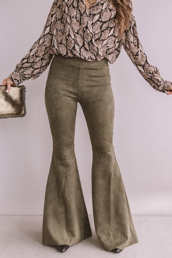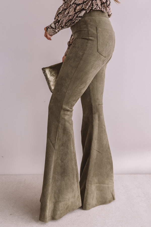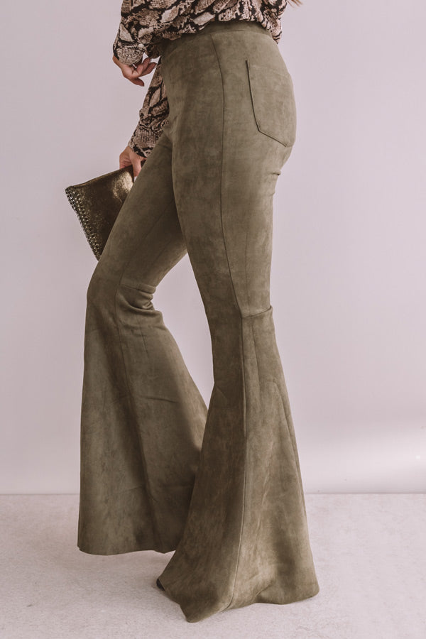 In a world full of changing trends, remain classic in our army green colored "Kaci" bottoms featuring soft lightweight faux suede material, a high waist silhouette, two accent back pockets, and a stretchy form fit that falls into oversized raw cut flared hemlines! This unique piece will take you from season to season when you wear with your favorite strappy heel, tank, sunnies, and crossbody in the summer and with booties, a sweater, a faux suede hat, and tote in the fall!