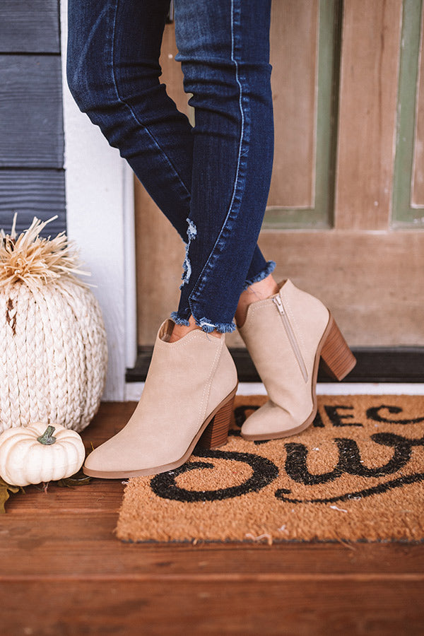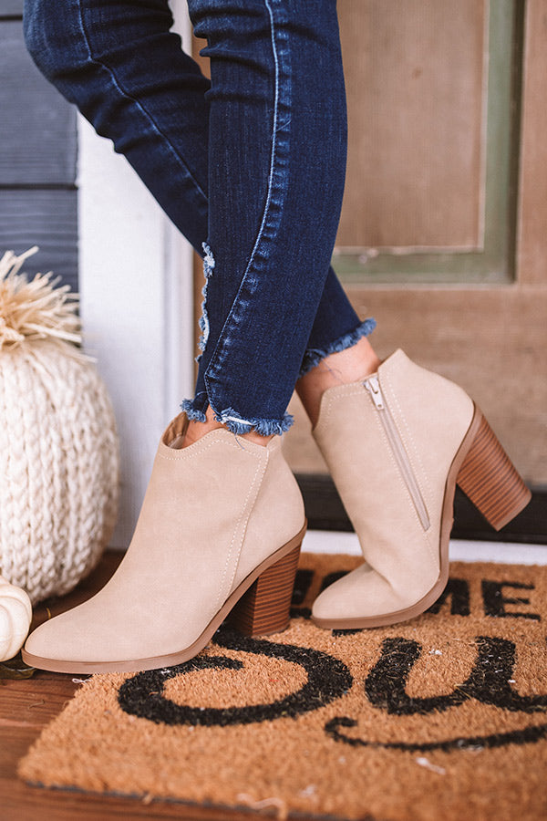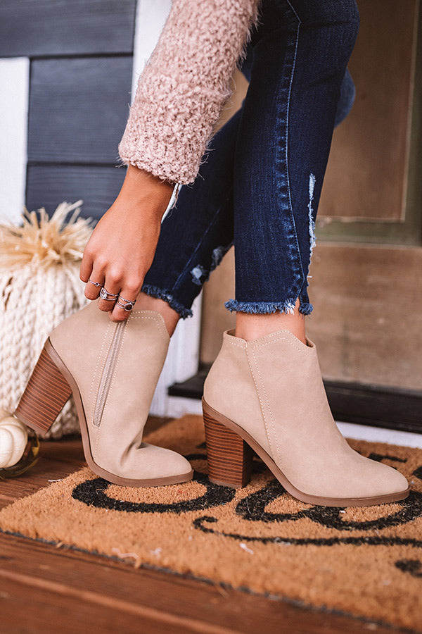 Strut through fall in style with our adorable beige colored "Kasie Bootie" featuring faux suede material, 4-inch block heels, pointed closed toes, inside zip closures, and a lightweight ankle high silhouette! This bootie runs more true to size.